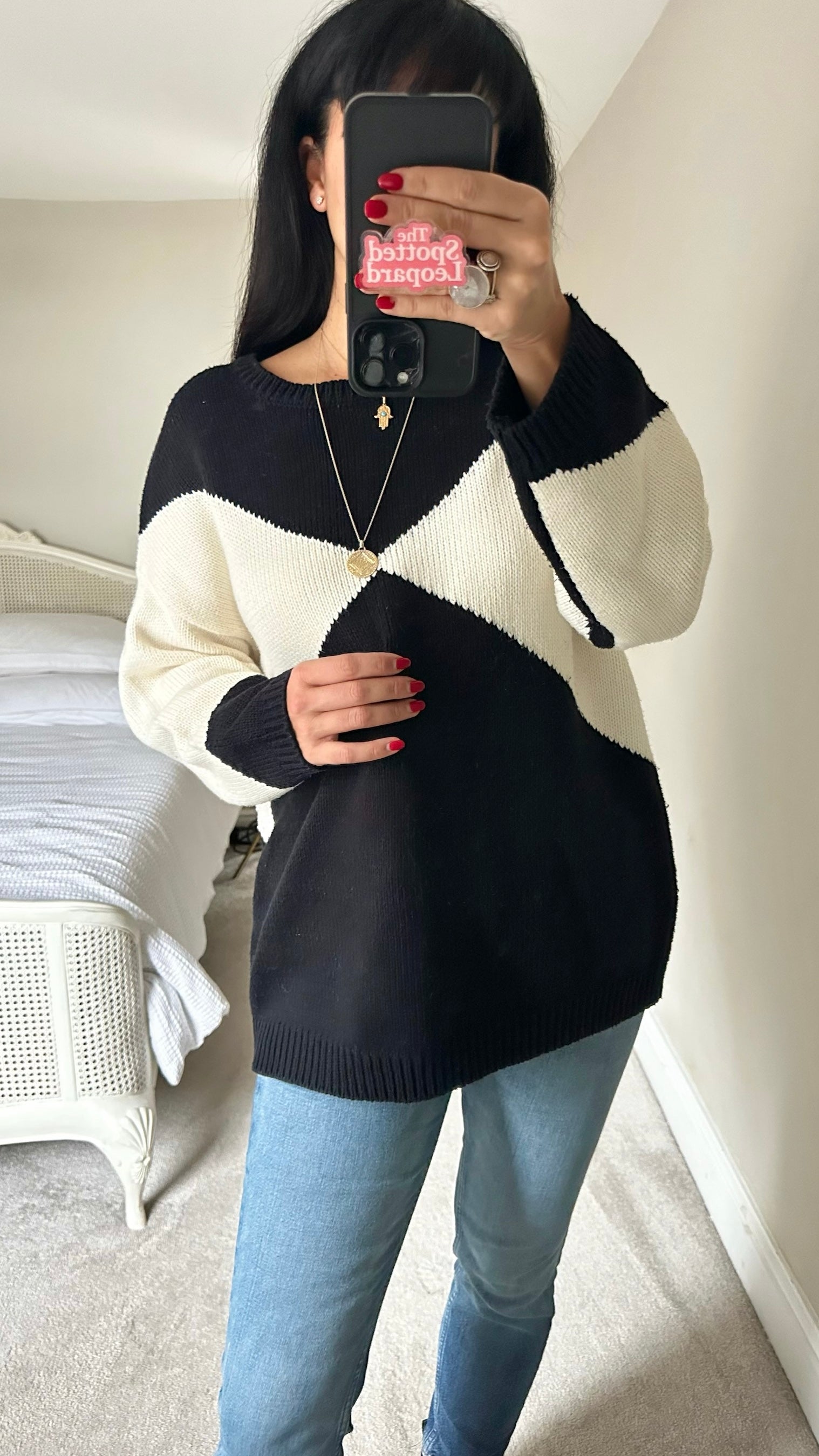 Le Marias black white monochrome block cover oversize jumper large L UK 12-14