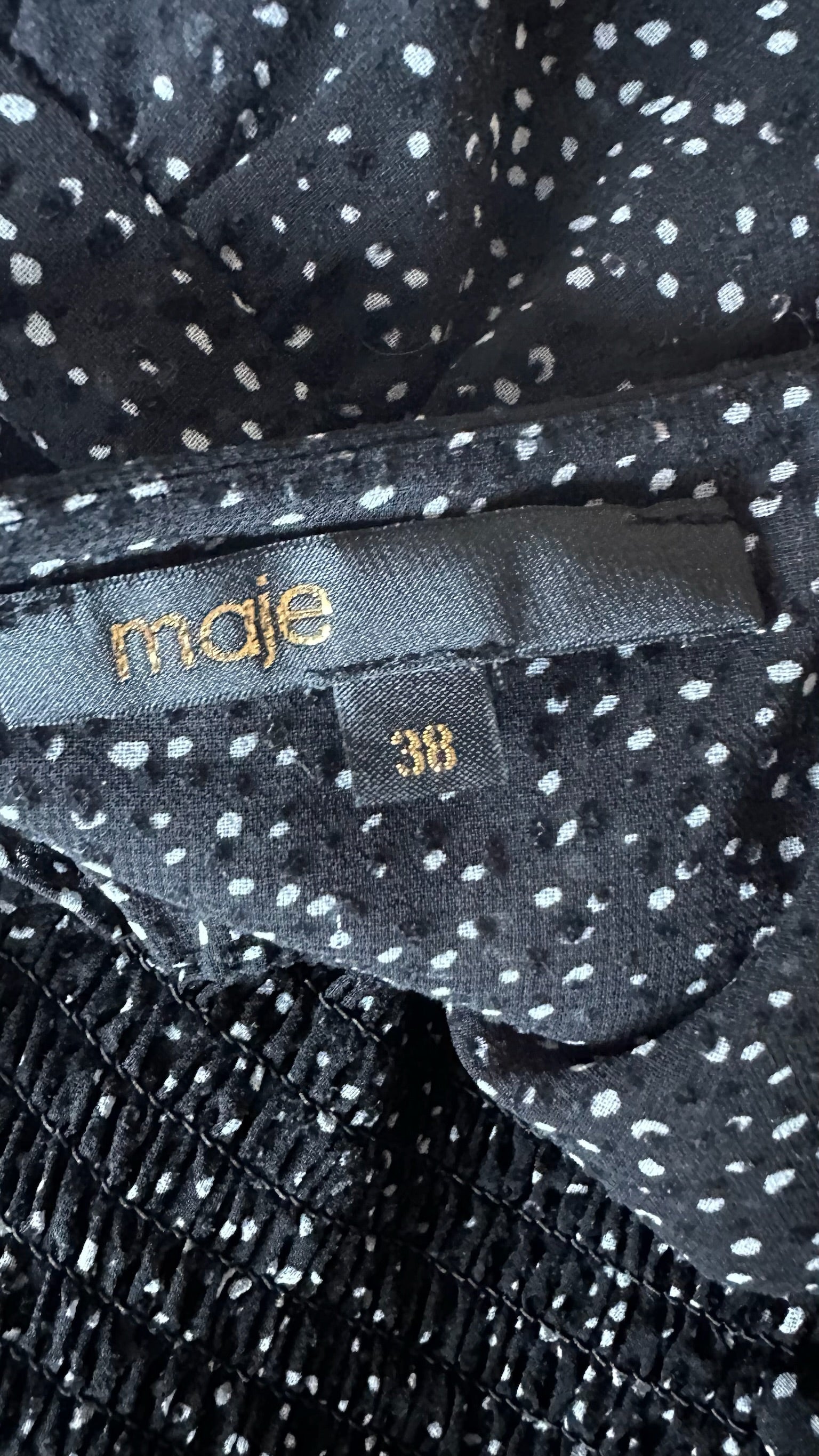 Maje black white polka dot shirt bust maxi event evening dress small UK 10 vgc