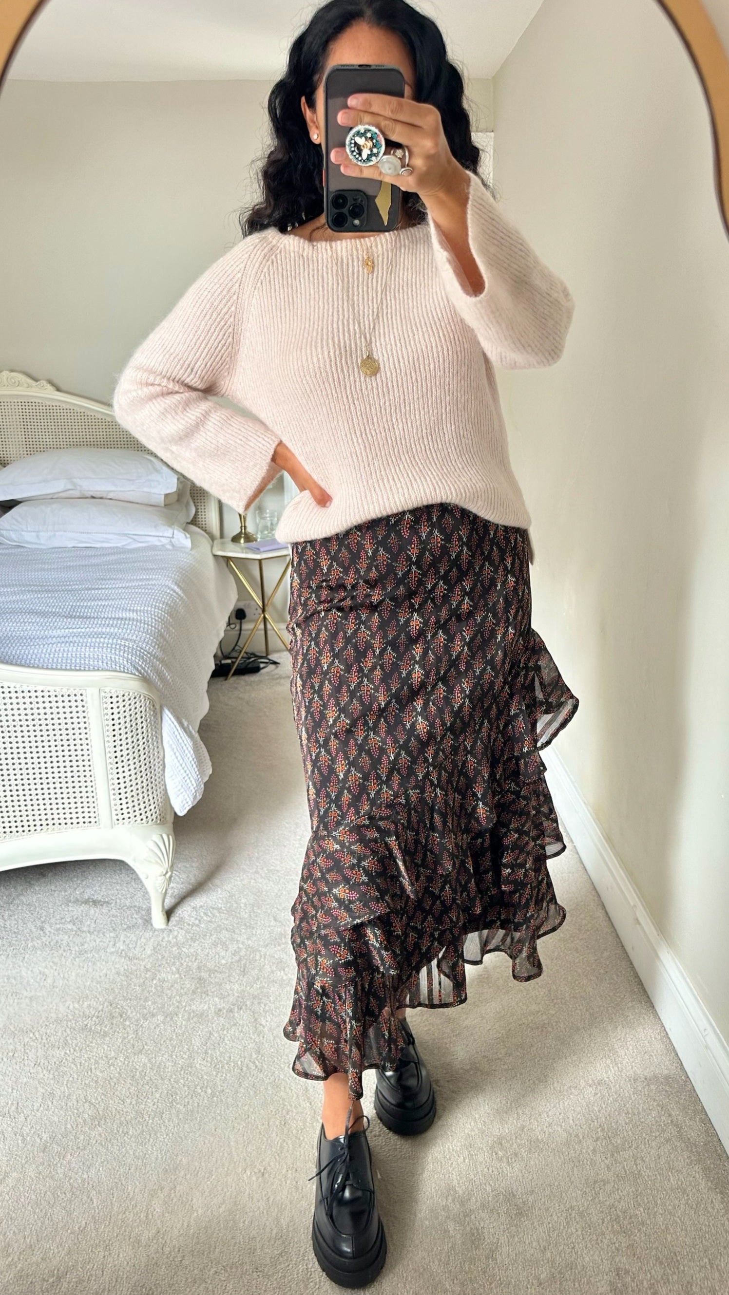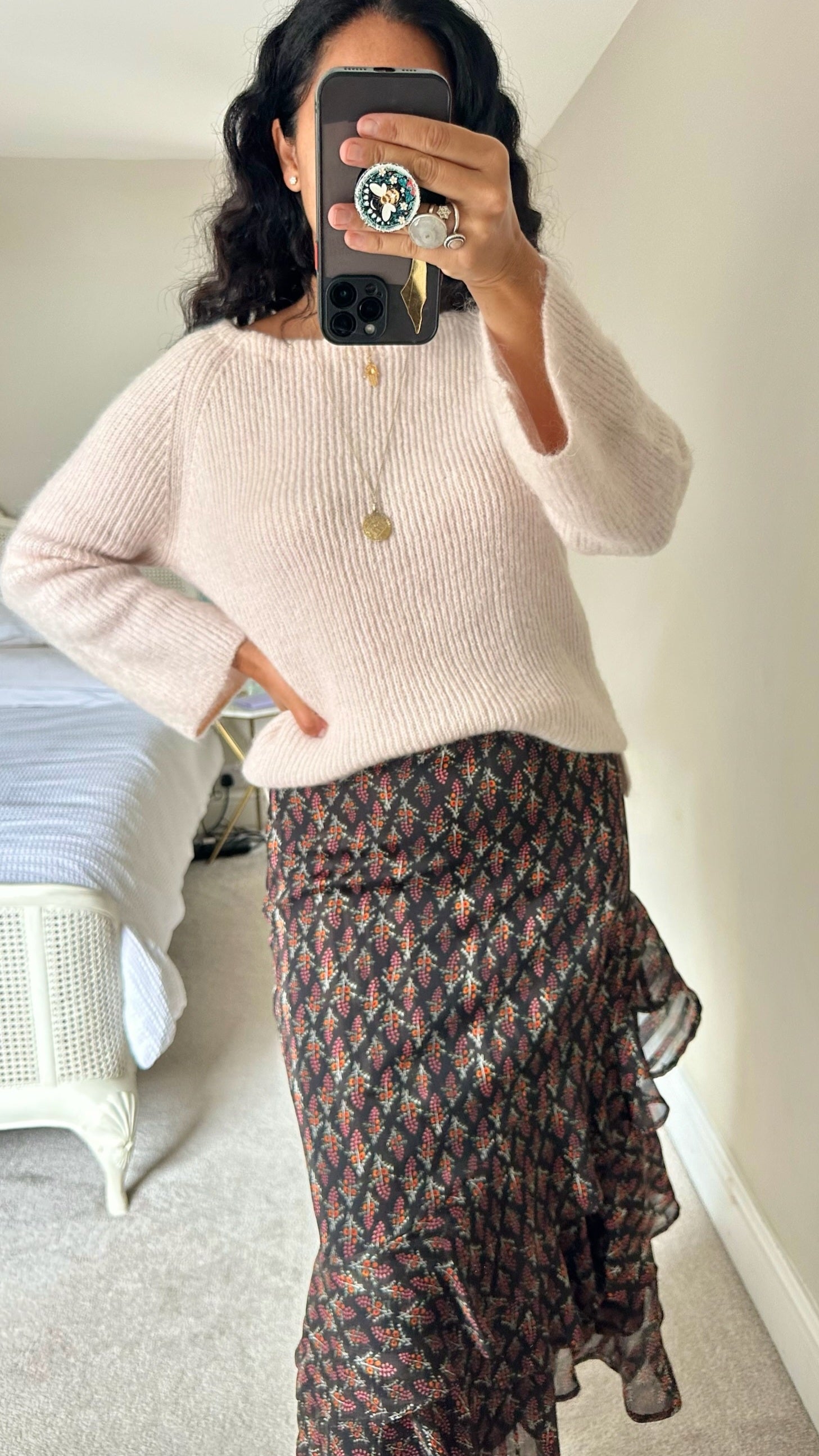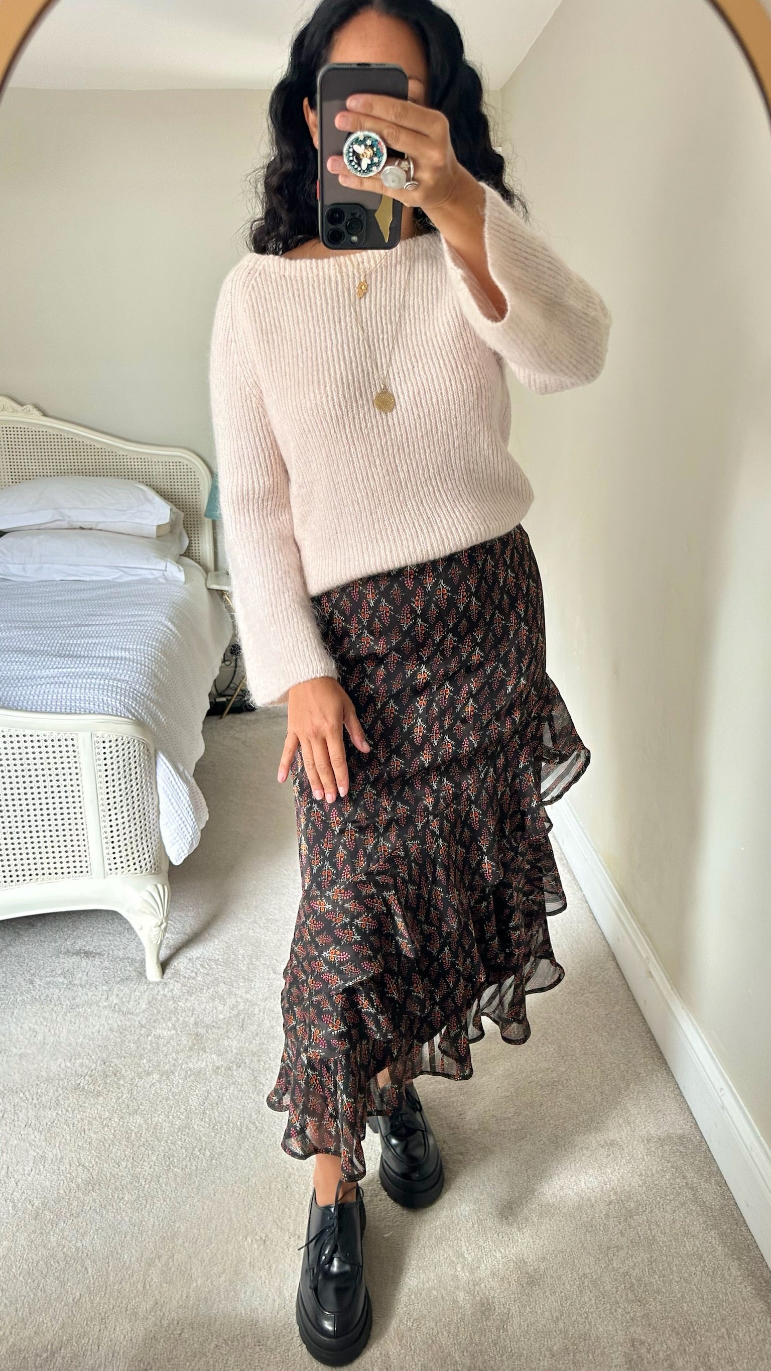 gorgeous cream and beige mohair blend jumper in excellent used condition ❤️ skirt and shoes also listed ❤️
