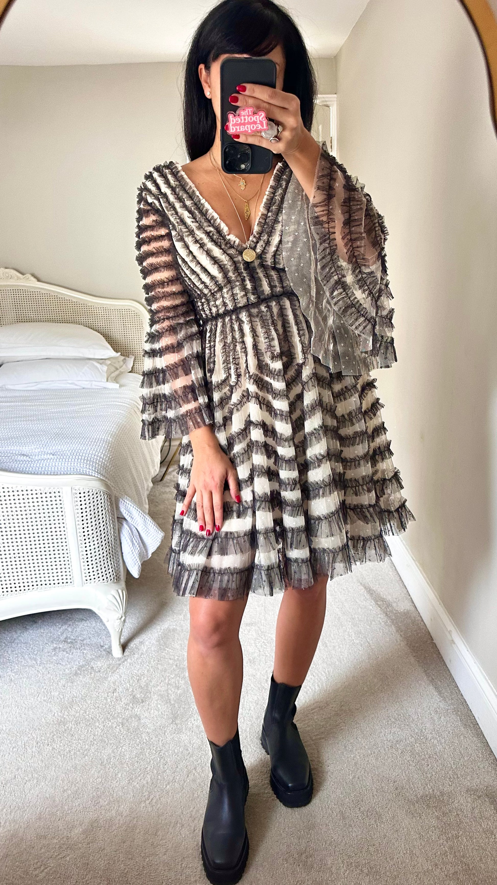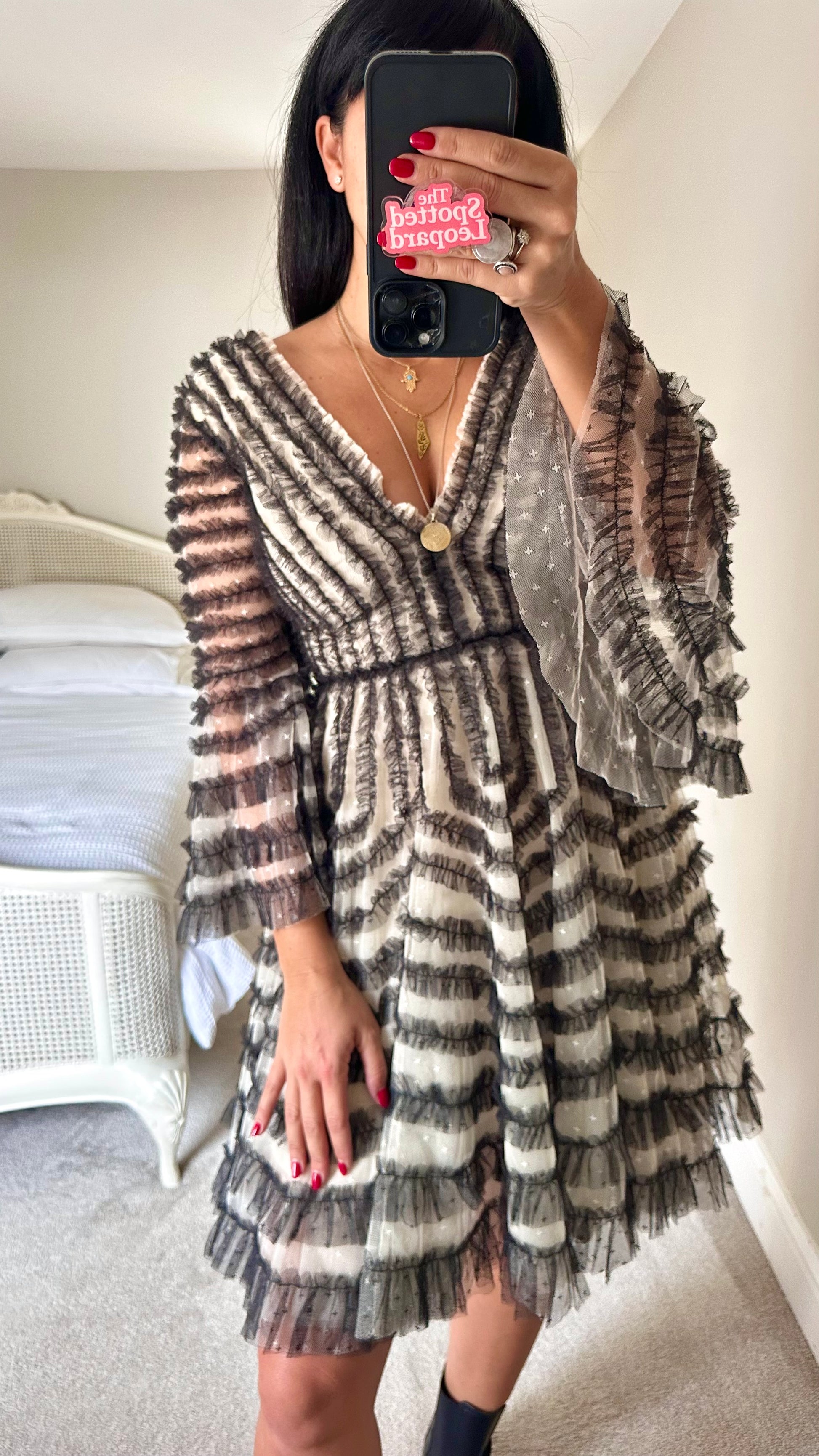 Needle & Thread @ Net a Porter black cream tulle event party dress small UK 8 vgc