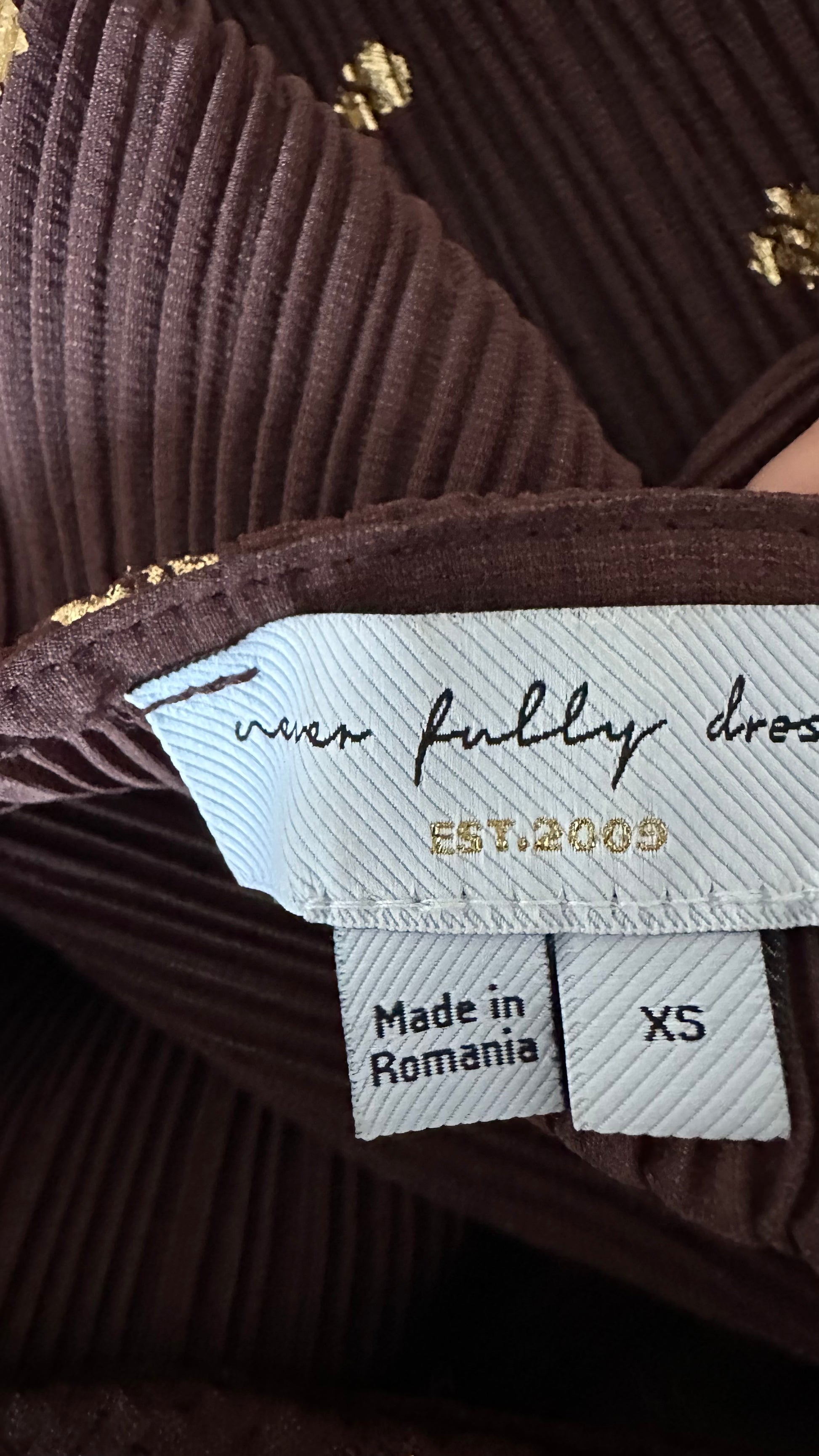 Never Fully Dressed brown gold polka dot plissé midi wrap dress extra small UK 6-8 vgc