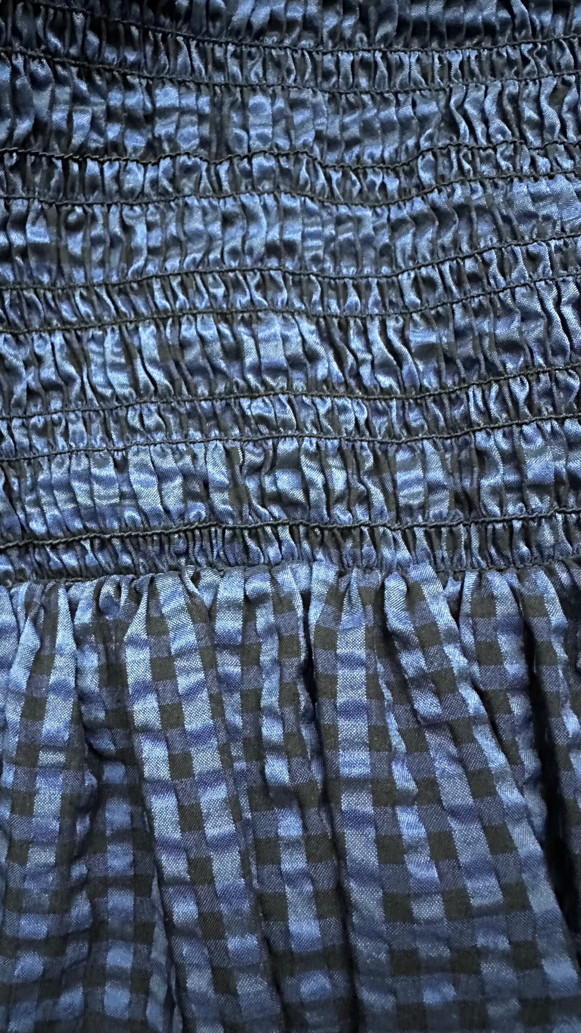 Never Fully Dressed navy blue black gingham shirred bust dress extra large UK 14-16 vgc
