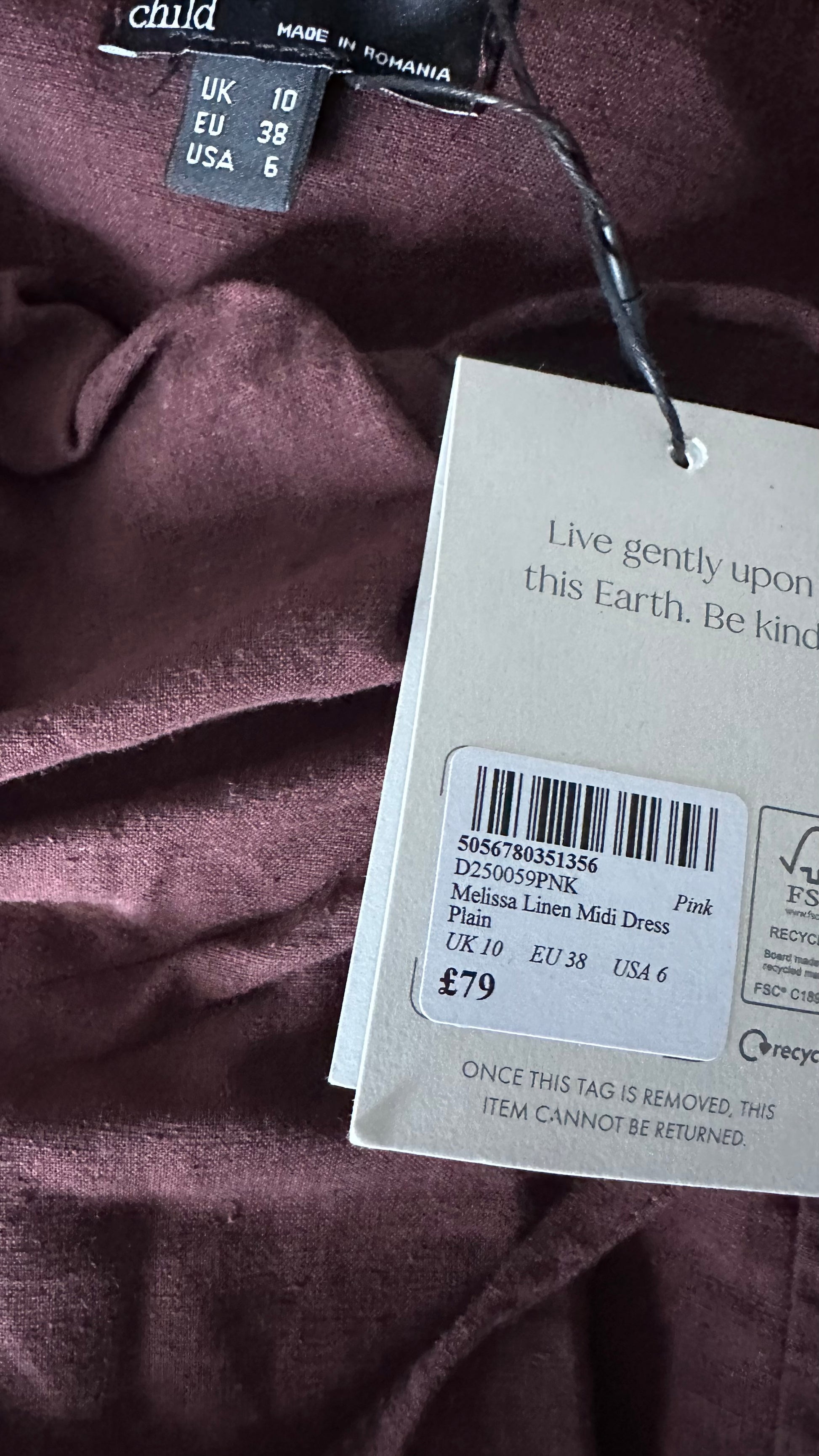 Nobody’s Child brown linen blend button up midi dress small UK 10 new bnwt