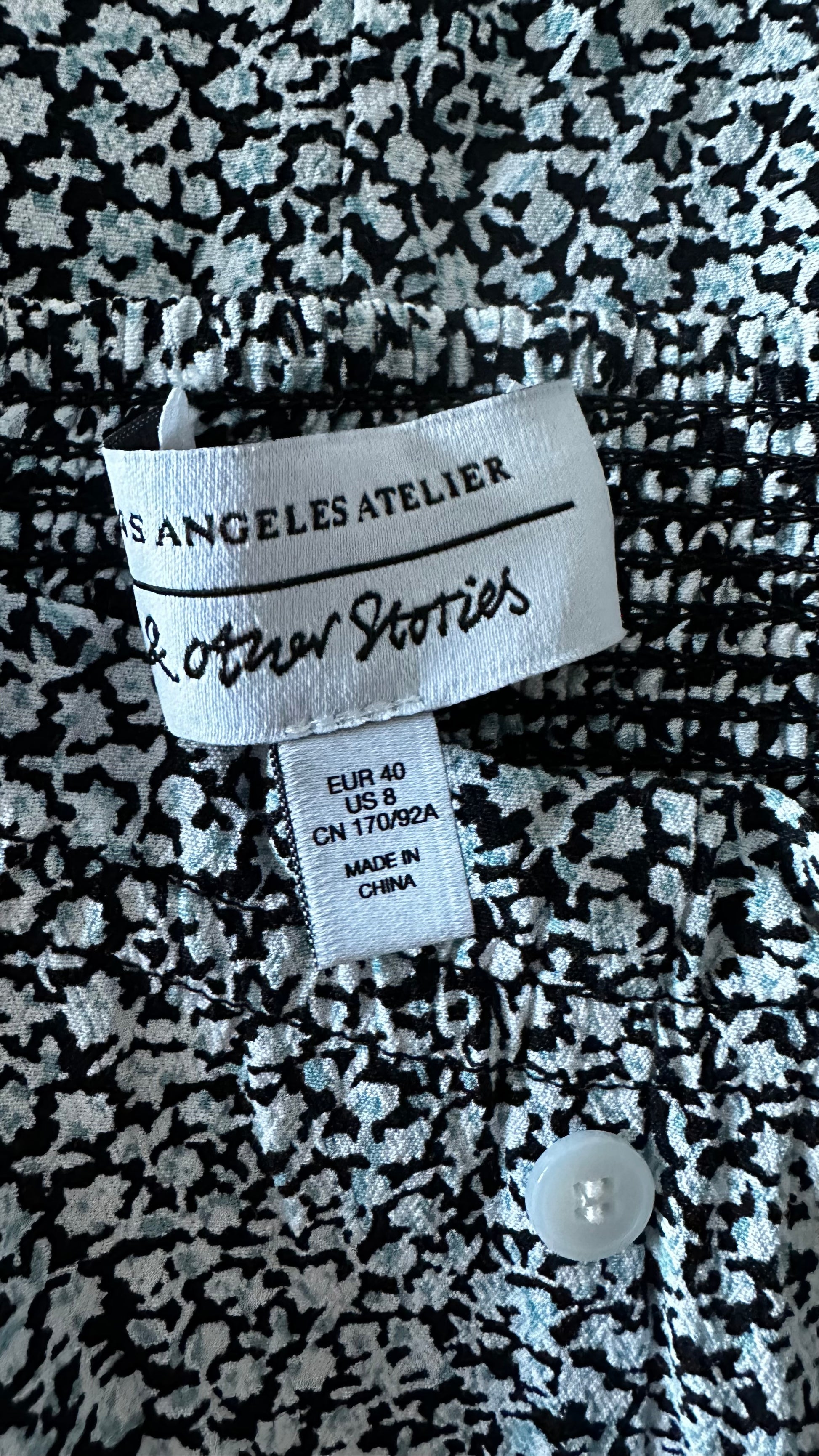 & other stories black blue floral midi long dress small medium UK 8 10 12 vgc