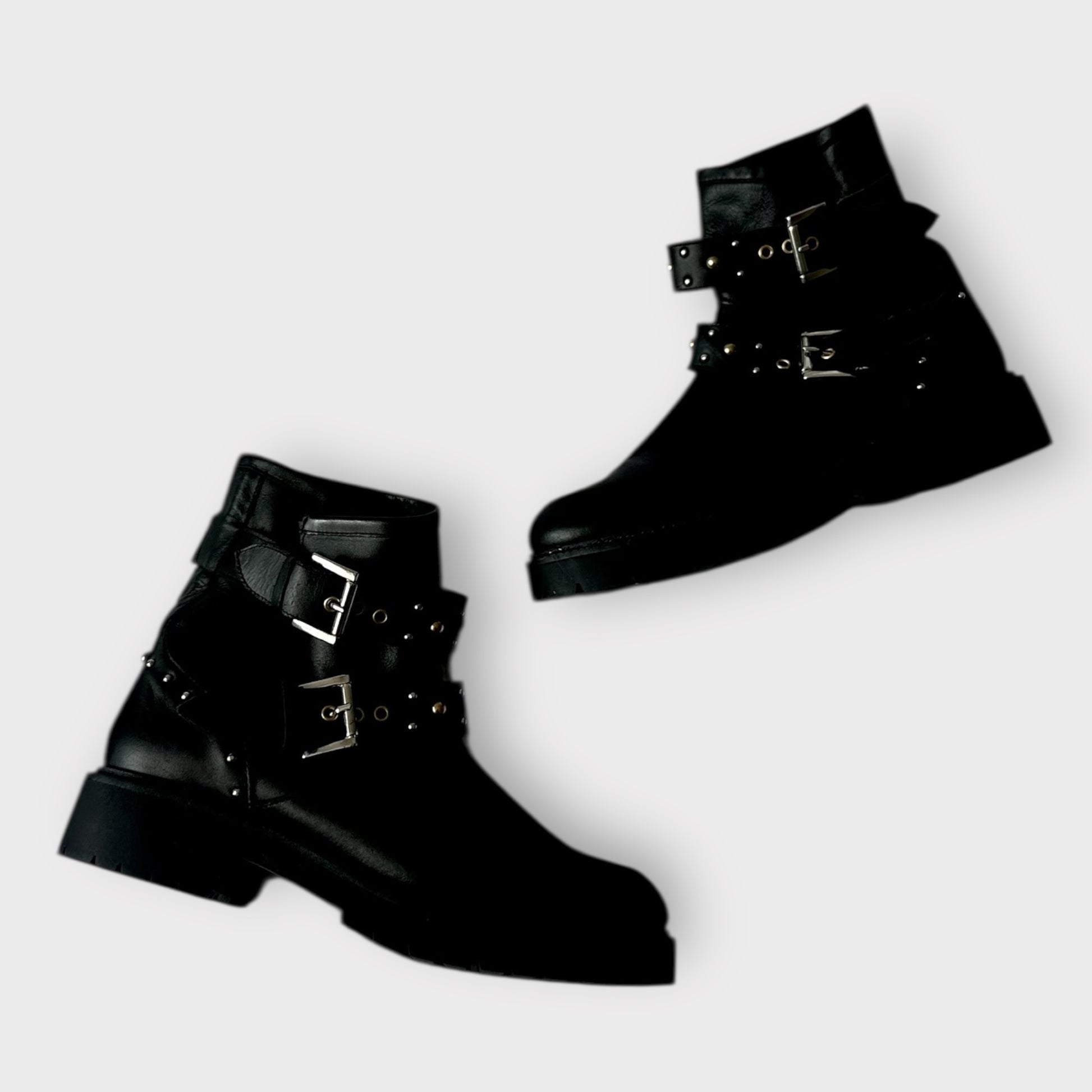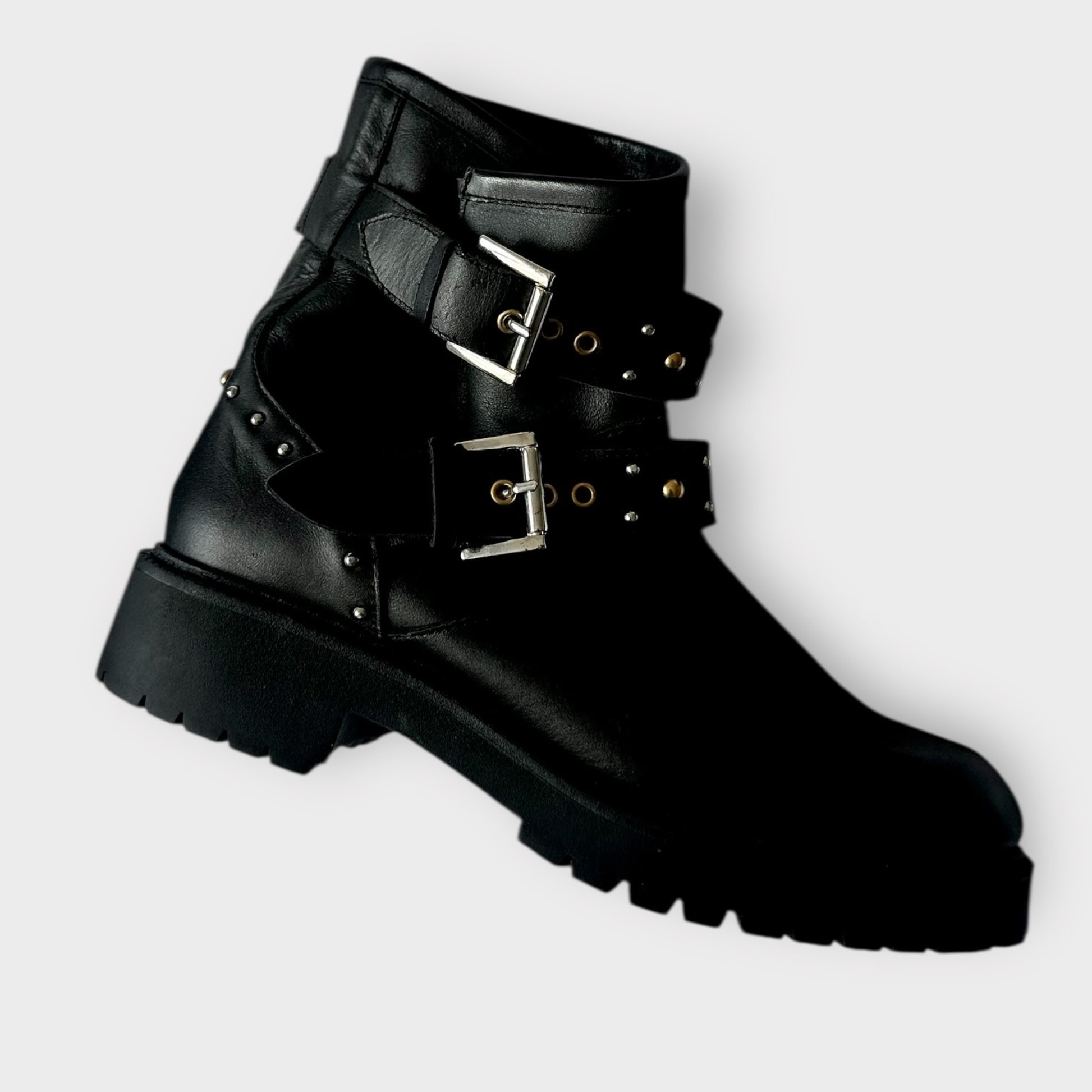 Office black studded leather boots mid calf new bnwot UK 6 EU 39