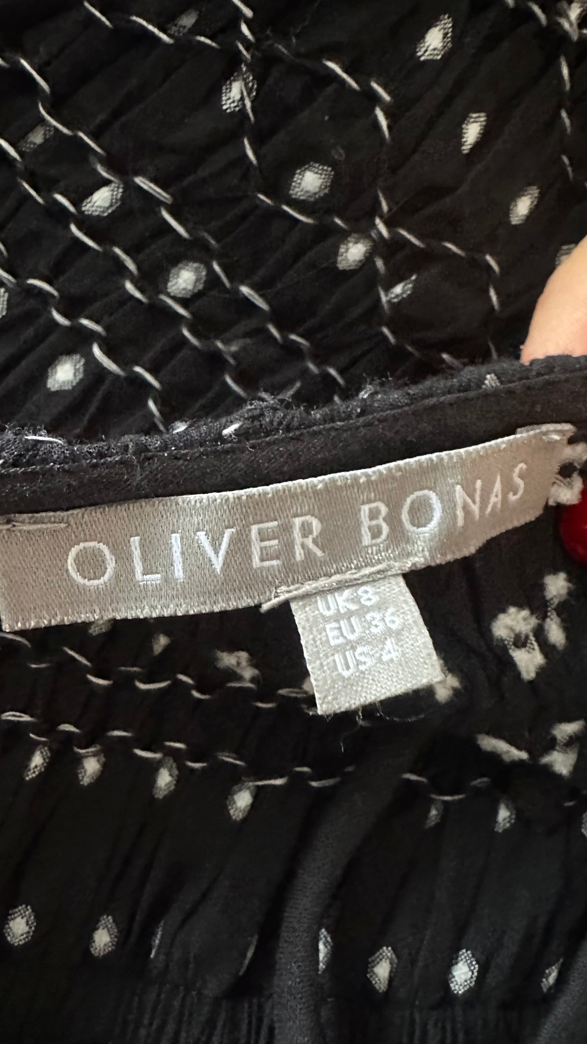 Oliver Bonas black white polka dot cotton maxi dress small UK 8-10 long vgc
