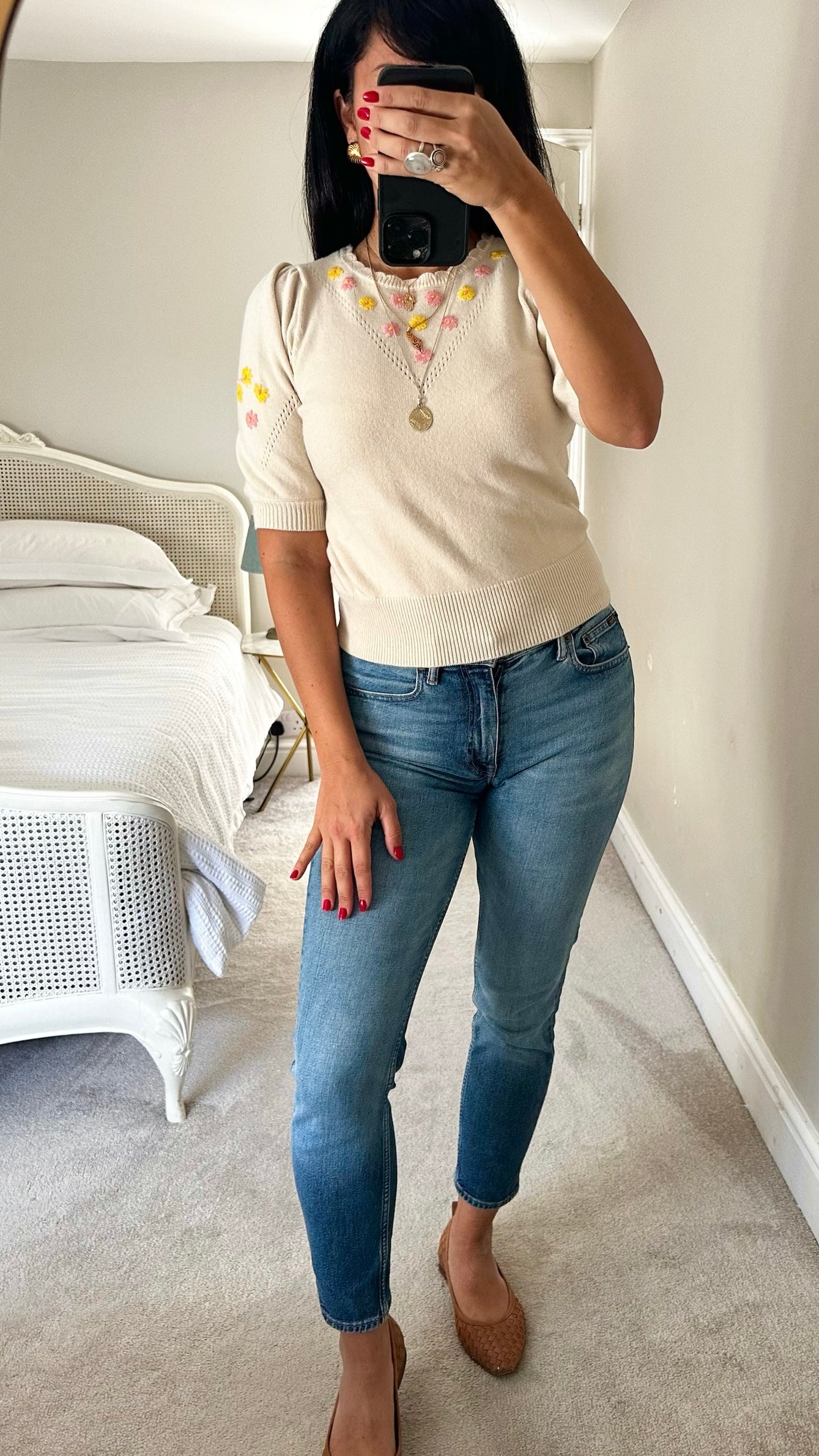 ❤️ lovely cream and pink floral vintage look knitted top in excellent used condition ❤️