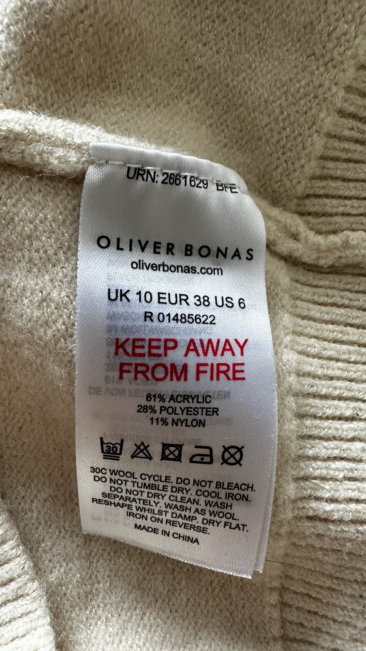 Oliver bonas cream pink floral vintage knitted top medium UK 10 vgc
