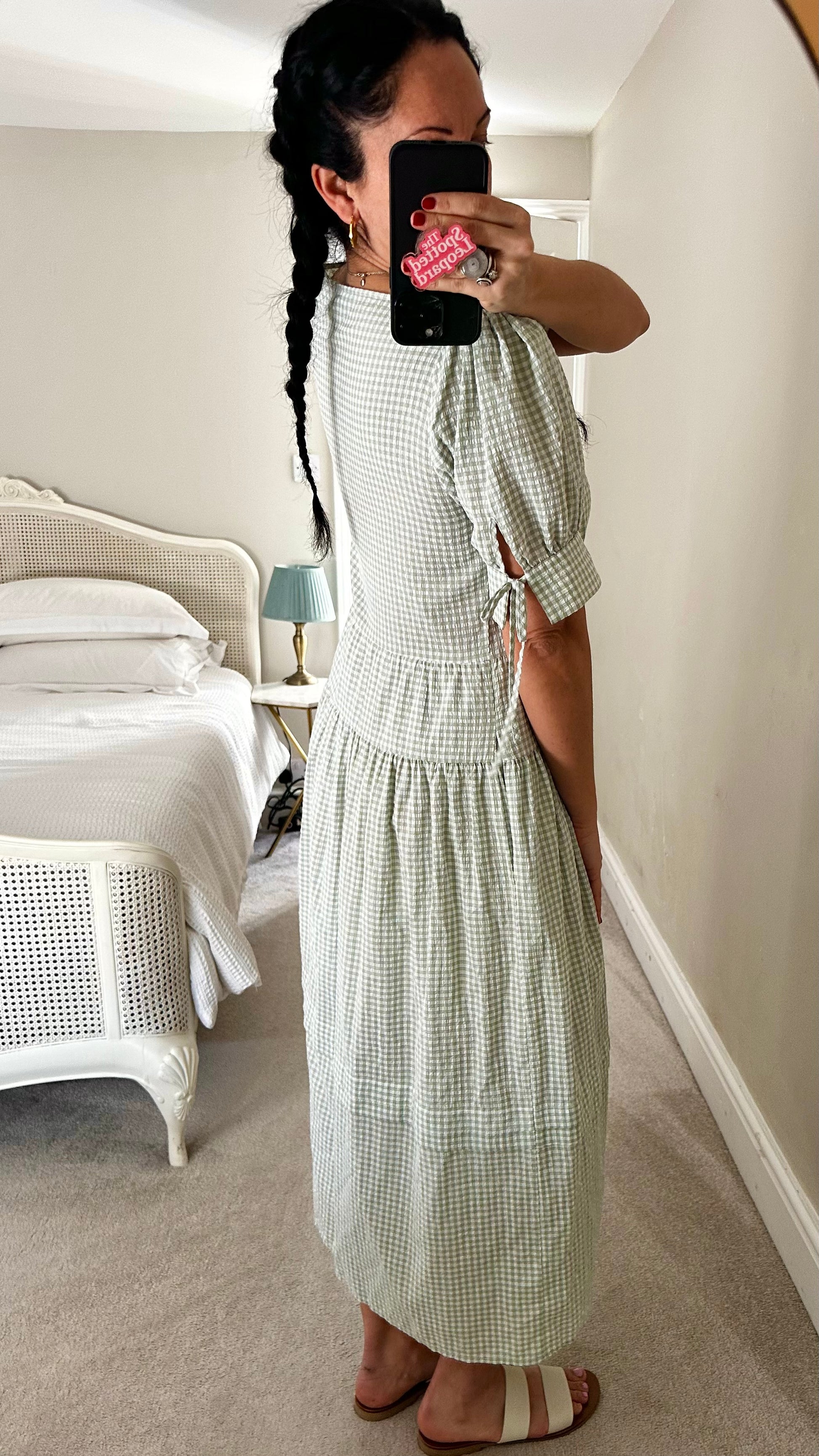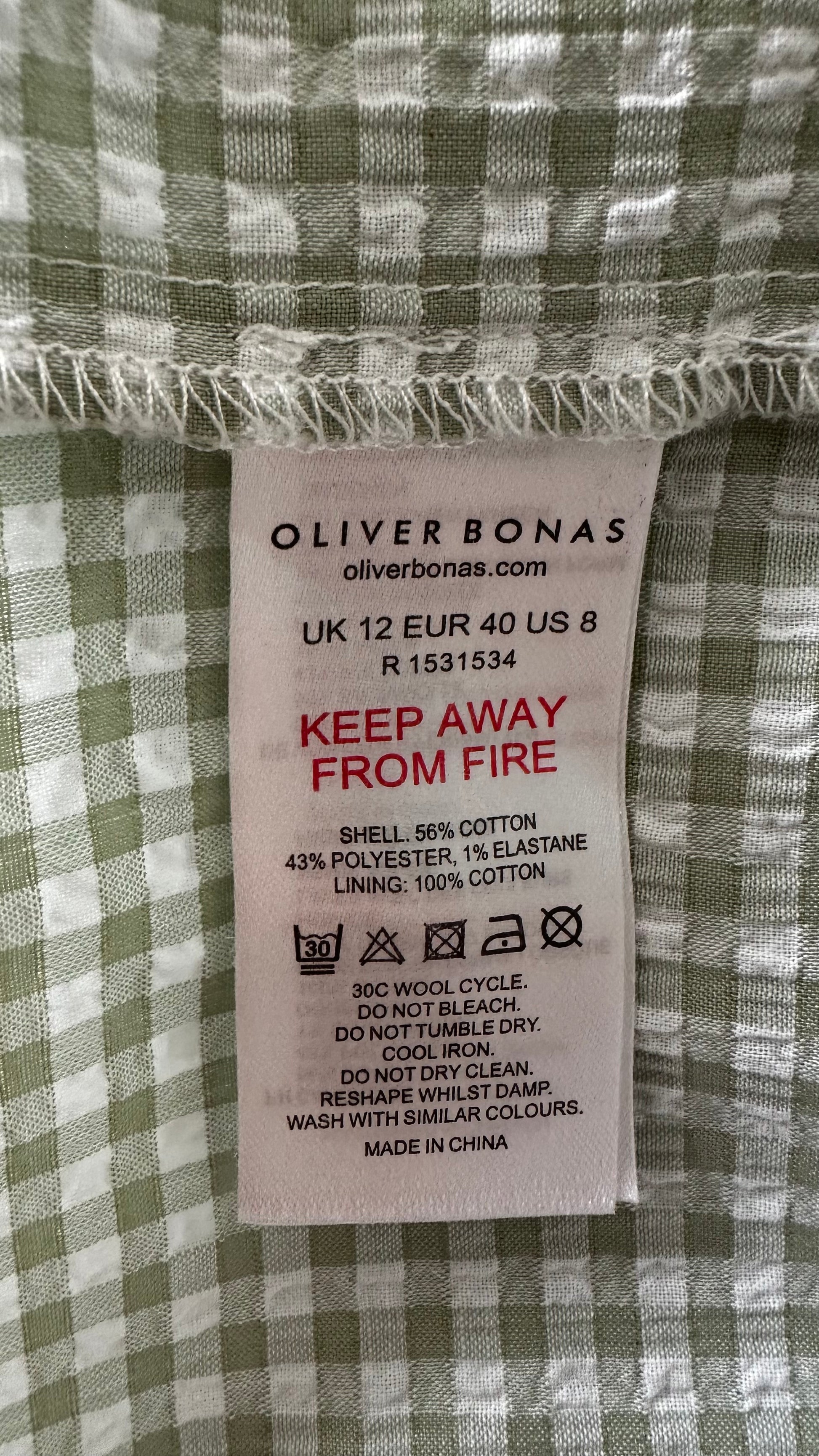 Oliver Bonas light green white gingham check button up holiday sun dress extra small medium UK 6-8 12-14 vgc