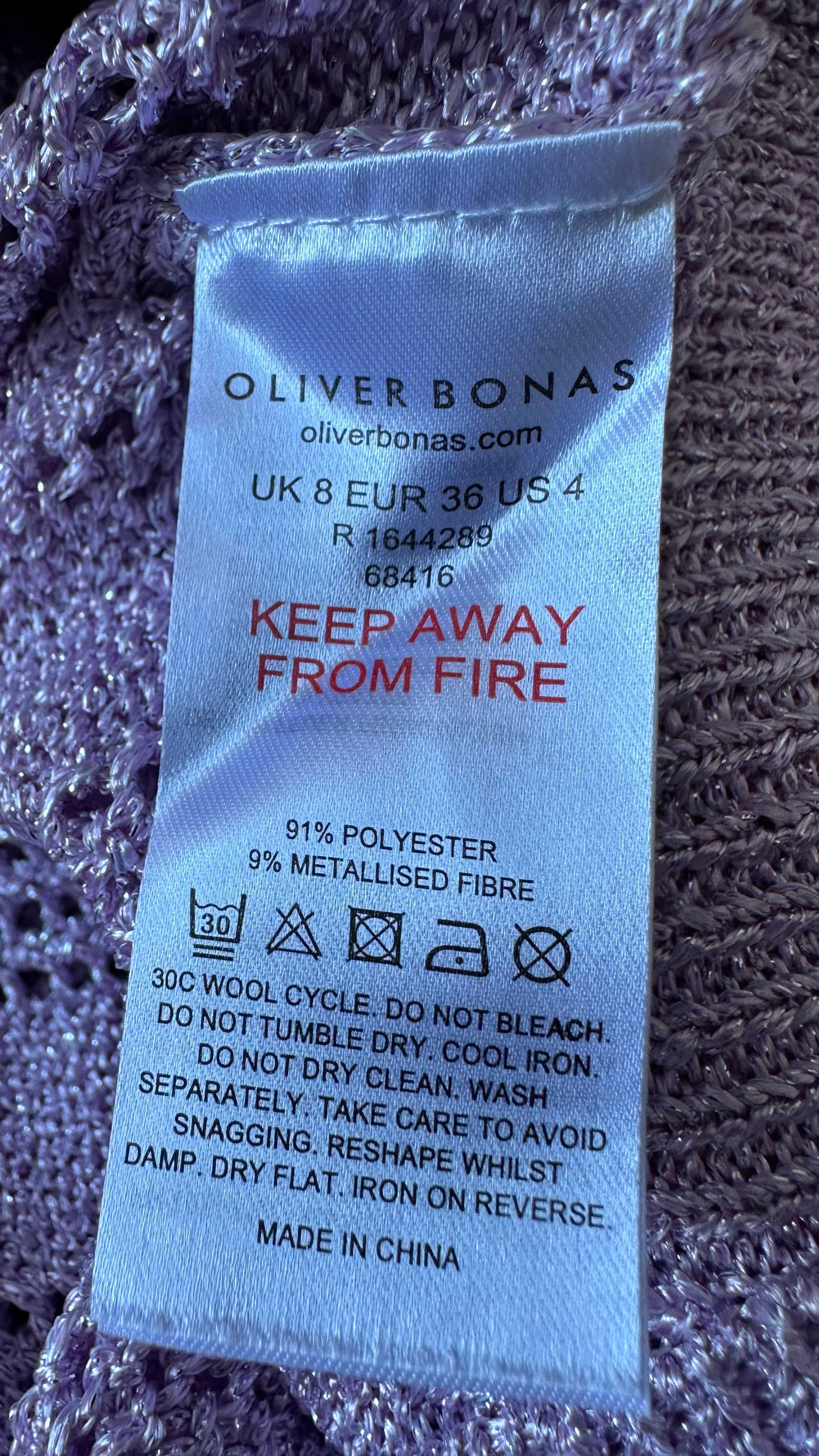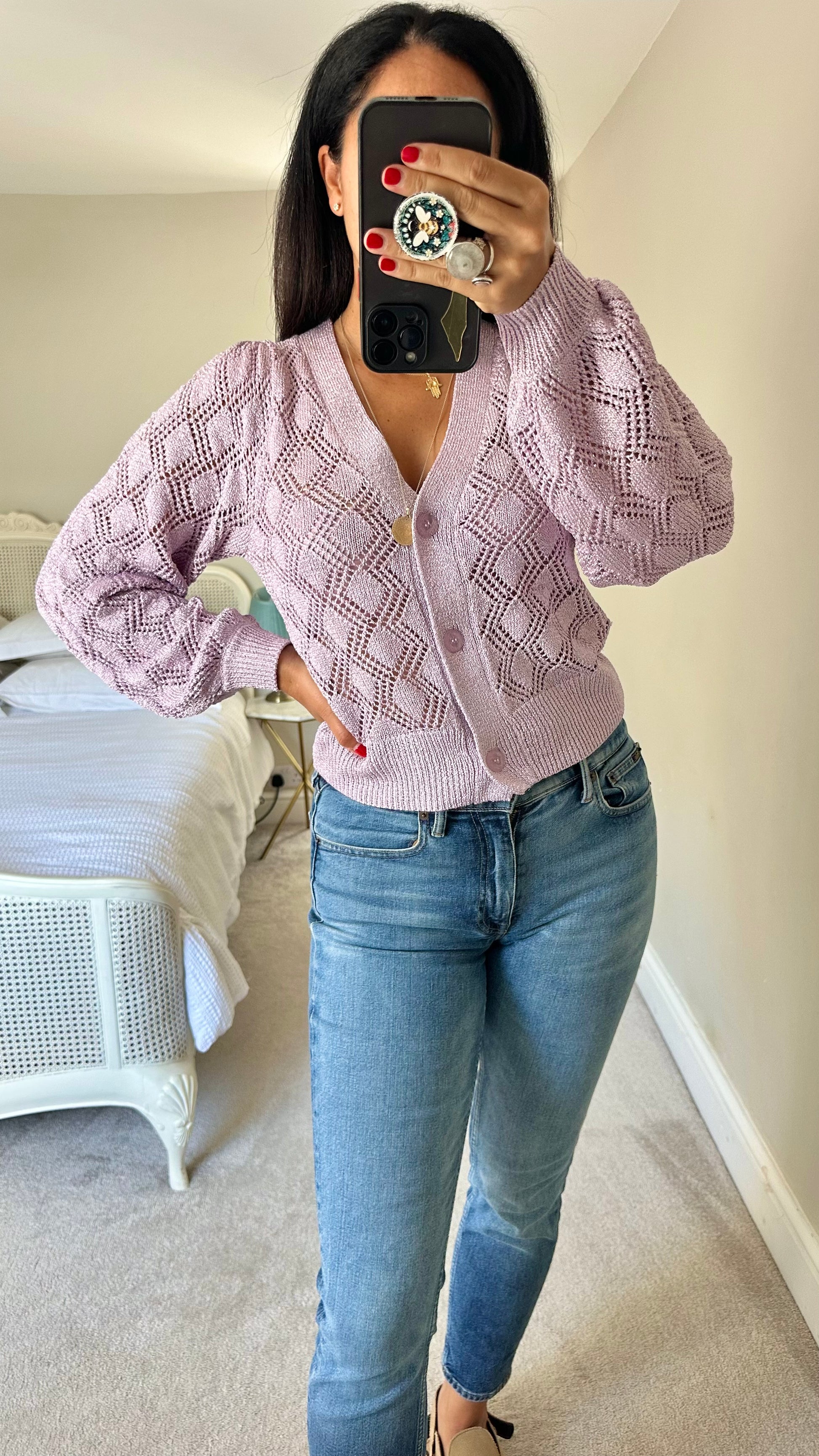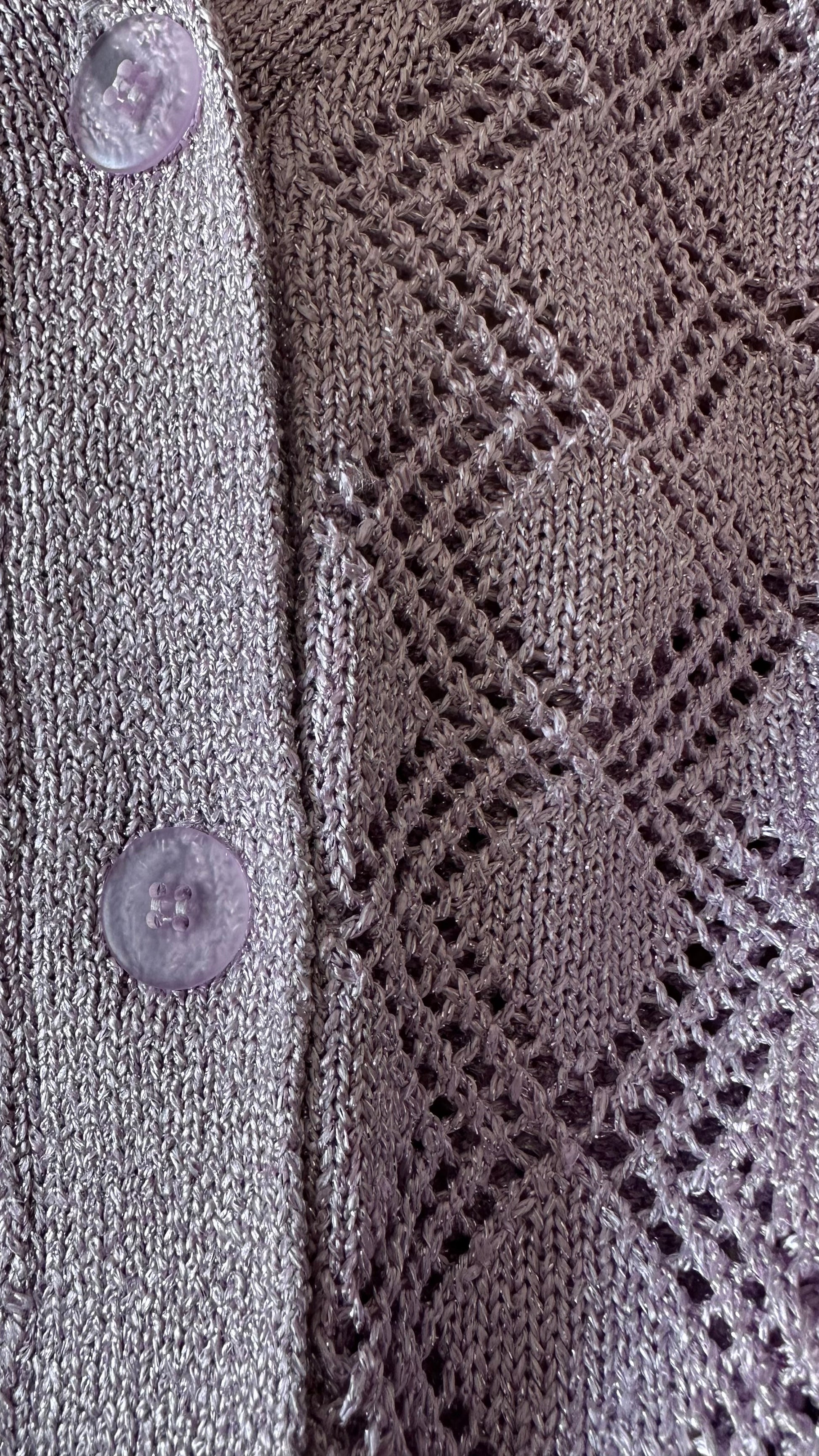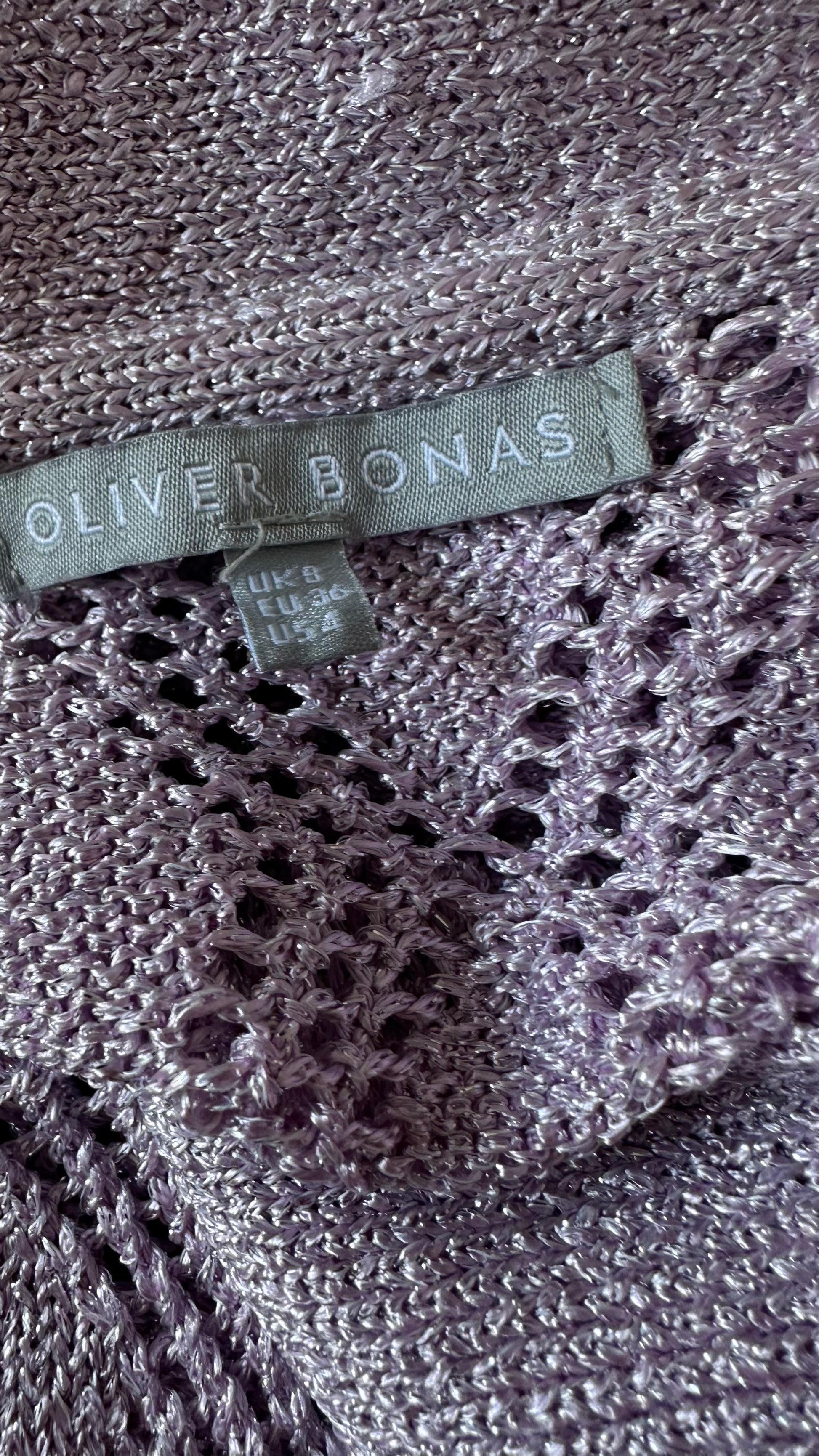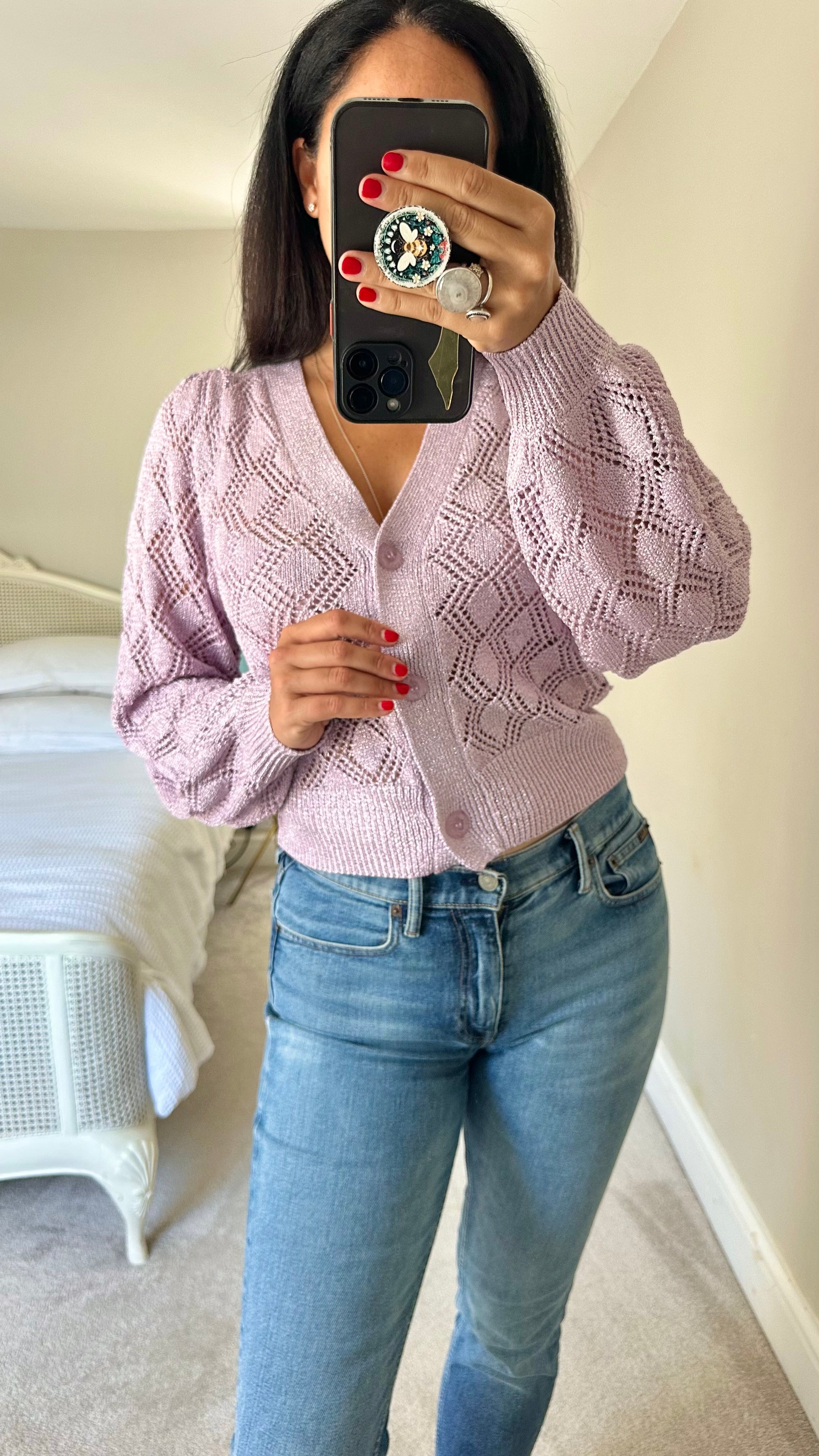 Oliver Bonas lilac shimmer crochet knitted cardigan jumper small UK 8 vgc