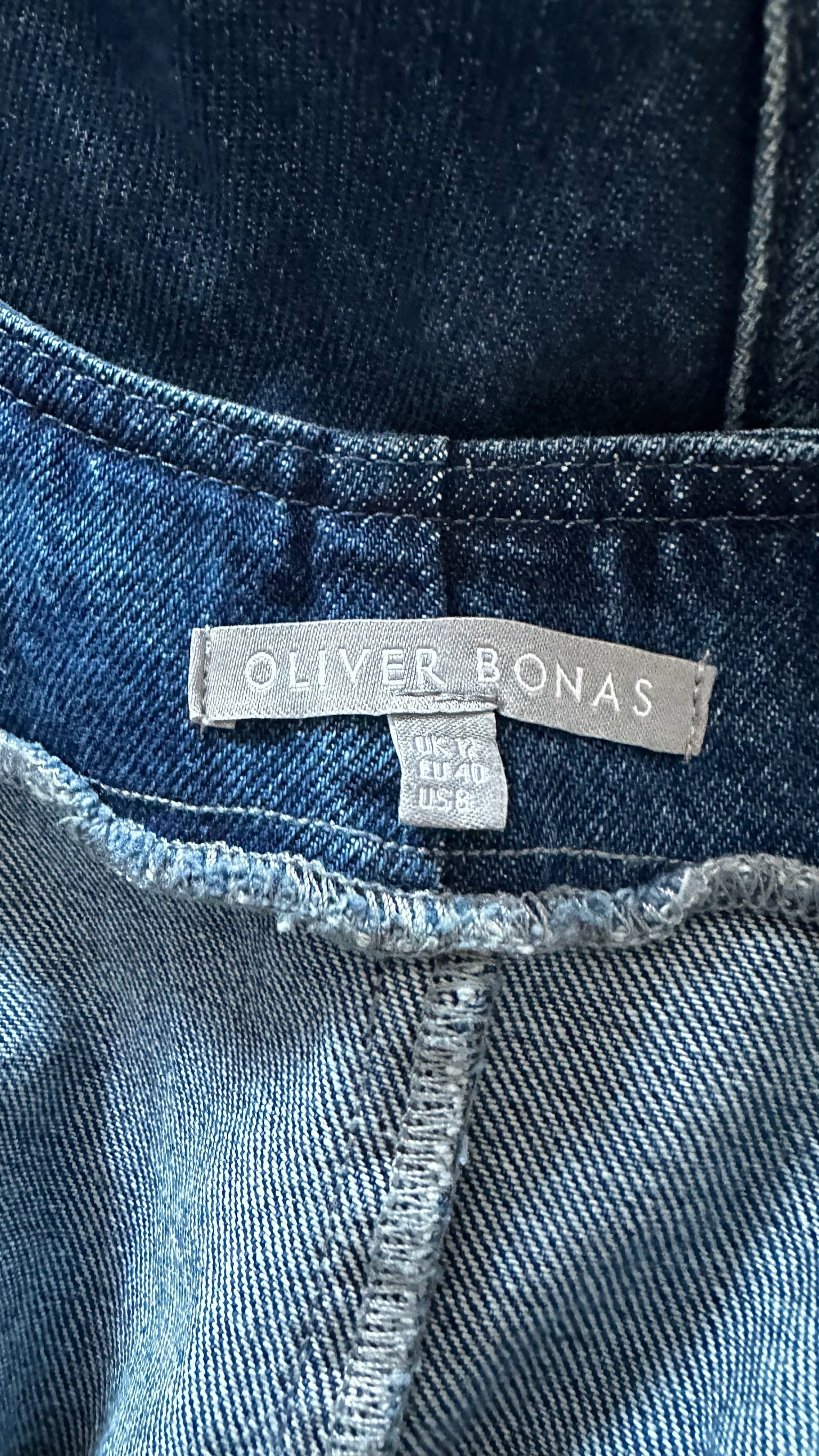 Oliver bonas navy blue denim dungarees jumpsuit trouser suit medium UK 8 12 vgc