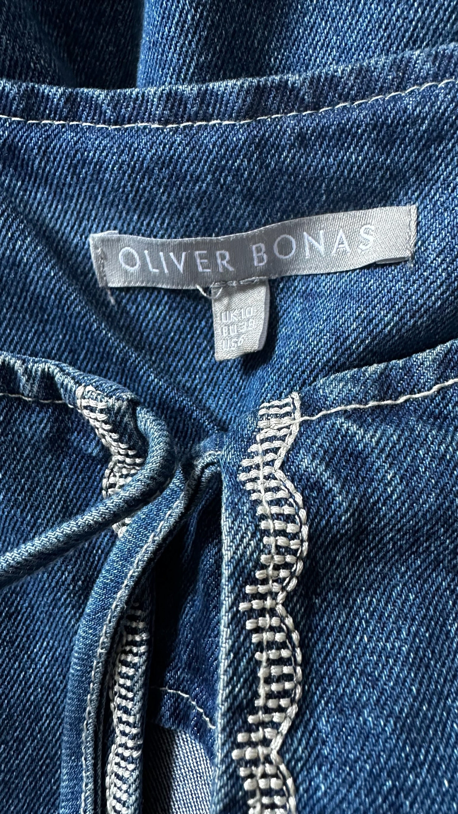 Oliver bonas navy blue denim maxi dress UK 10-12 vgc
