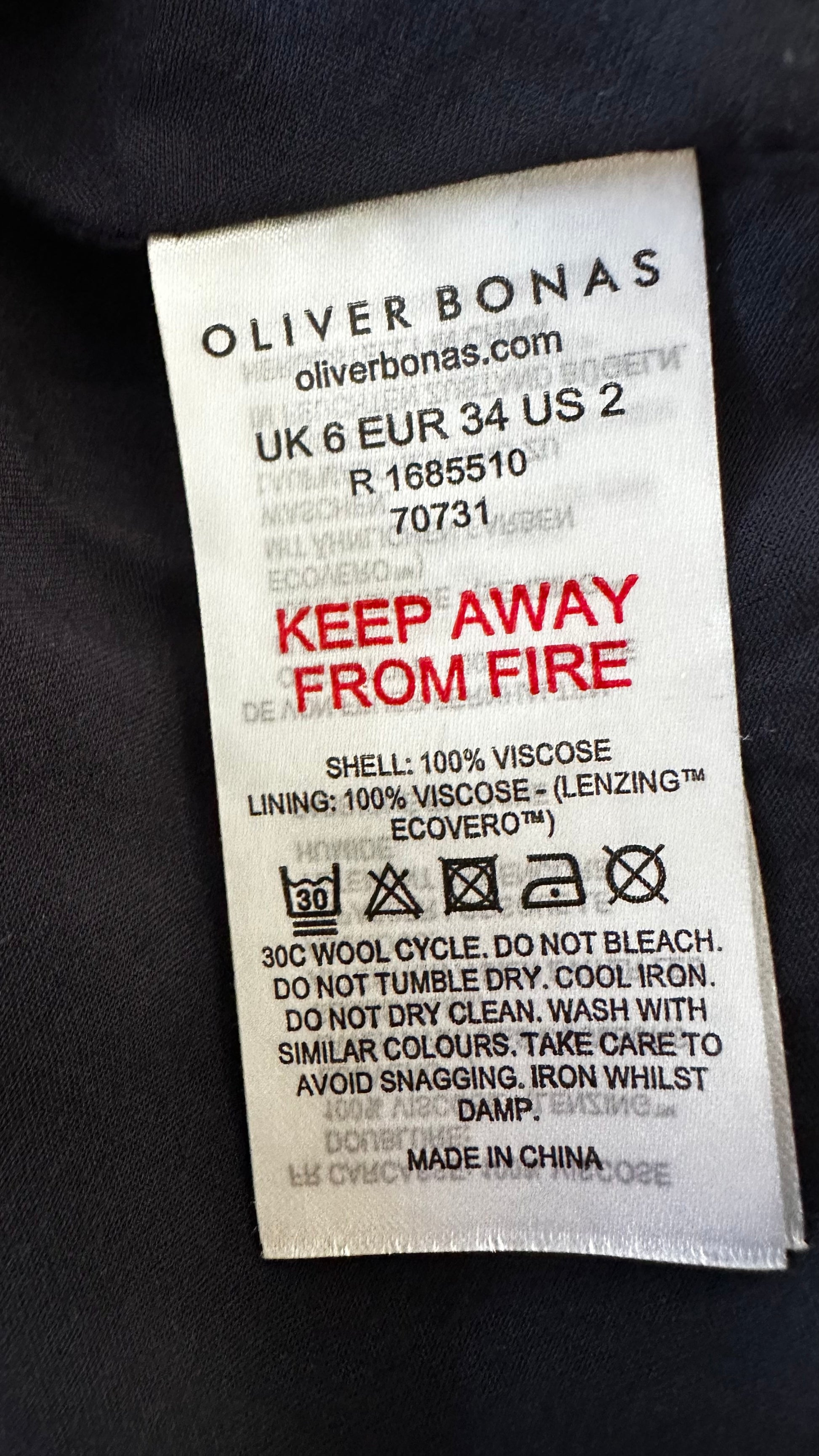 Oliver Bonas navy blue gingham check midi dress small UK 8 vgc