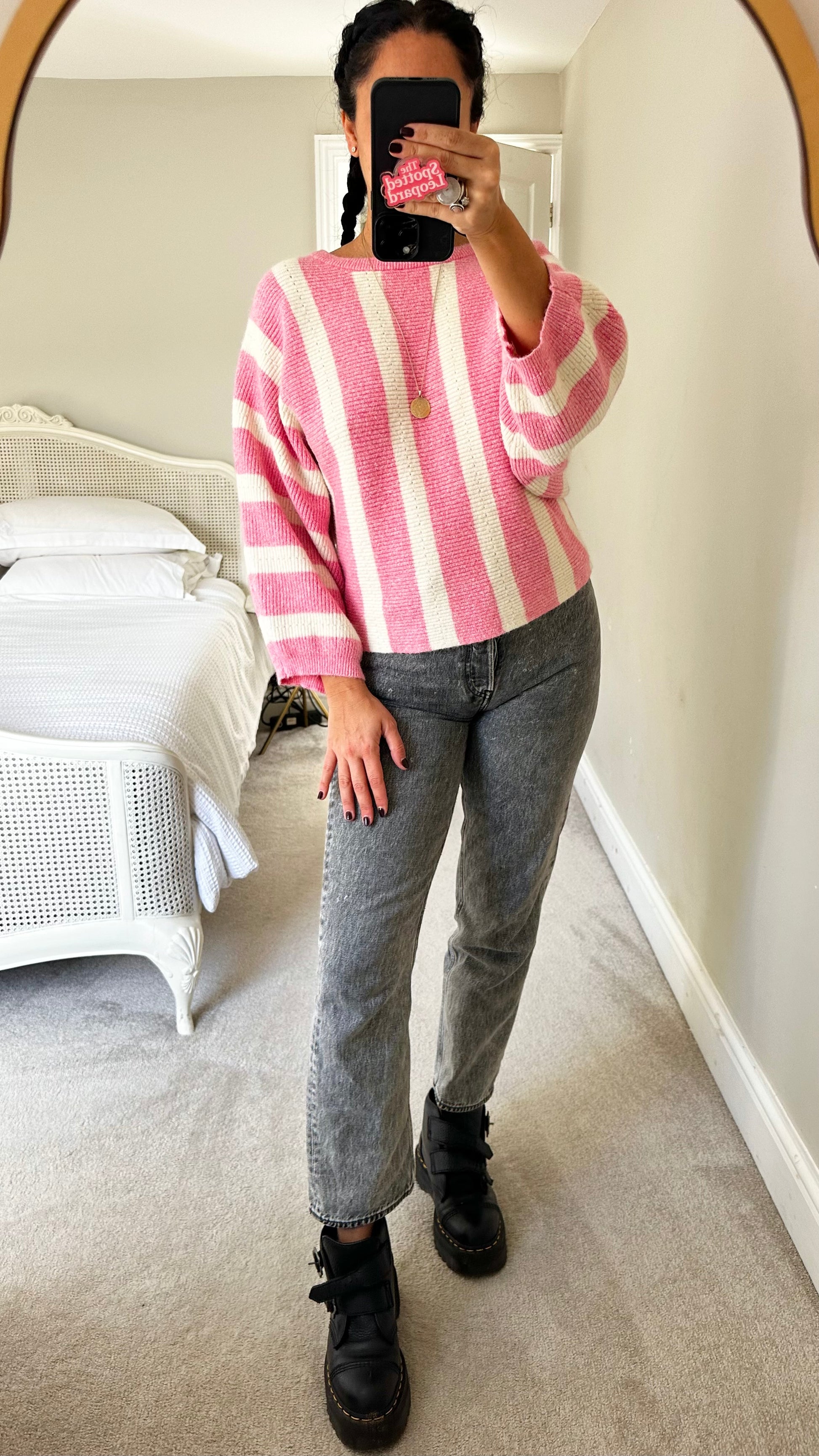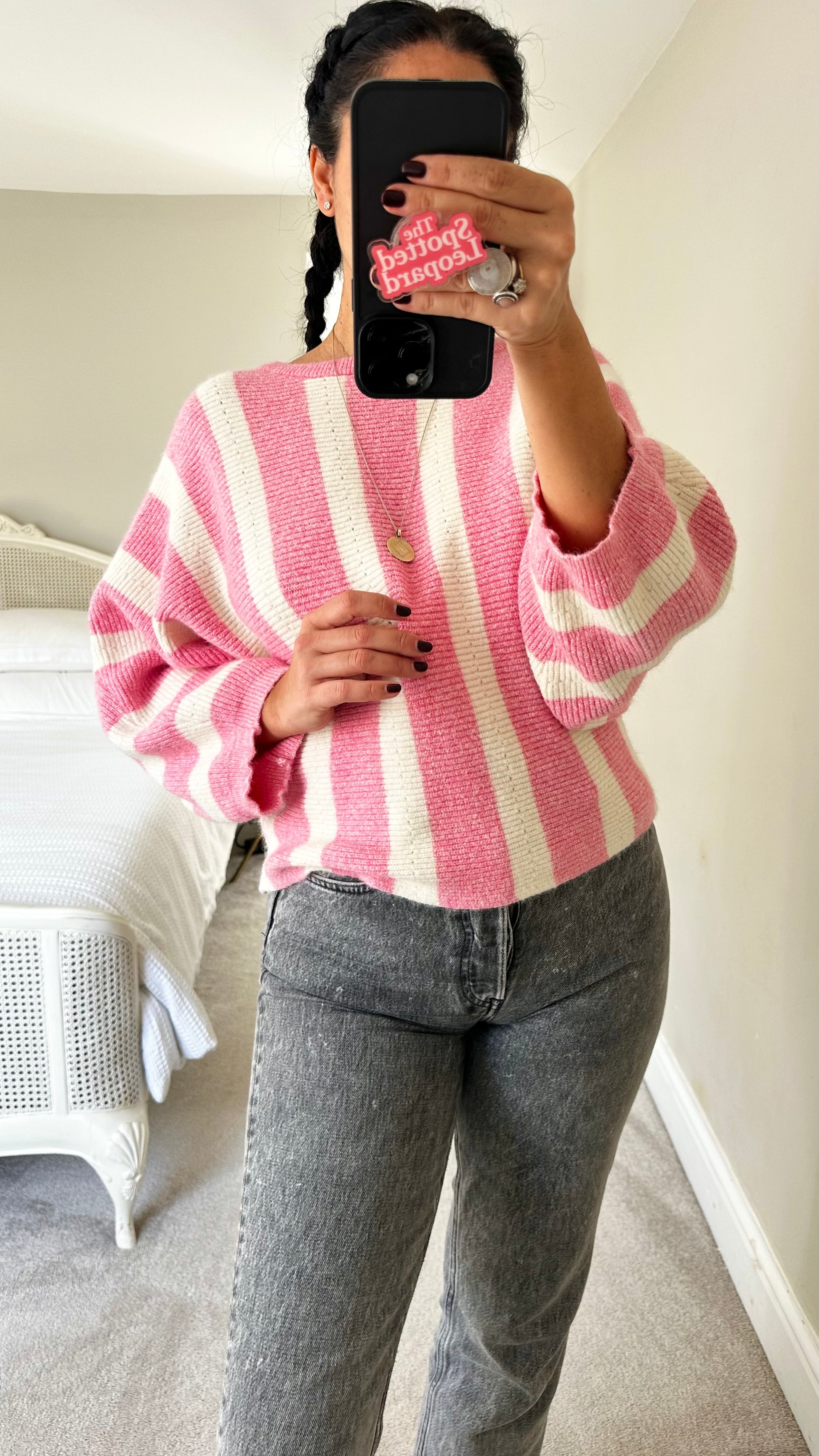 Oliver Bonas pink cream white stripe ice cream jumper small medium UK 10 vgc