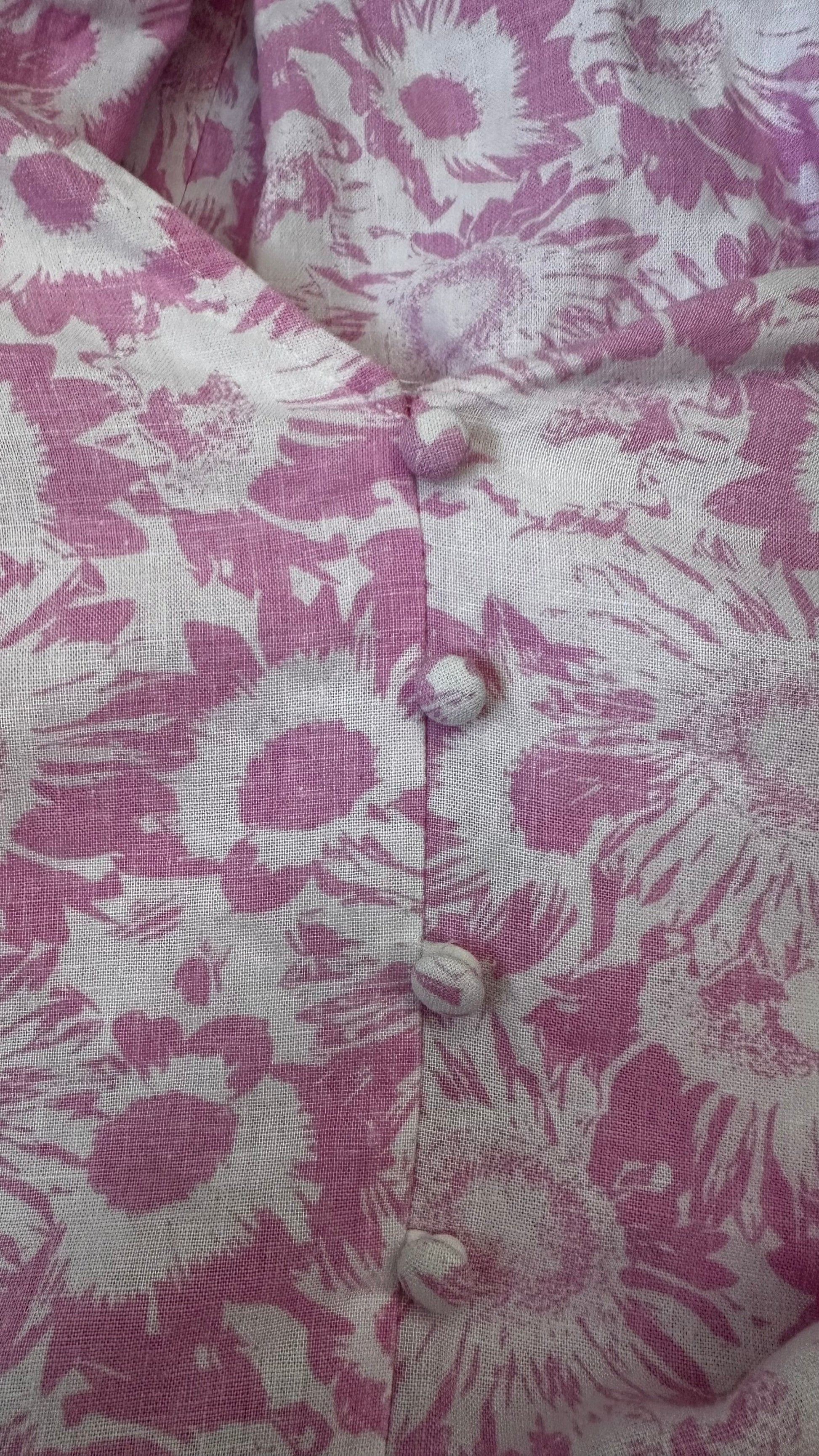 Oliver Bonas rose light pink white floral linen blend button up midi long dress medium UK 12 vgc