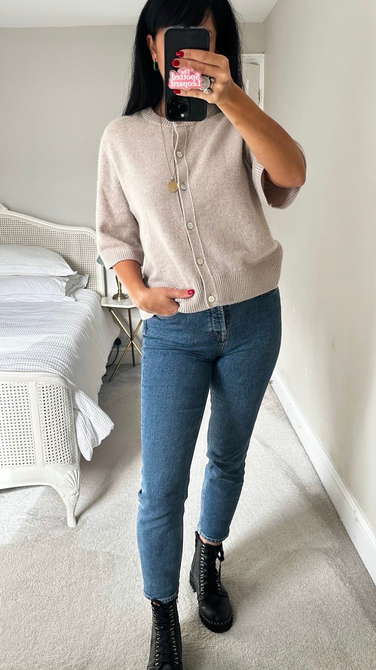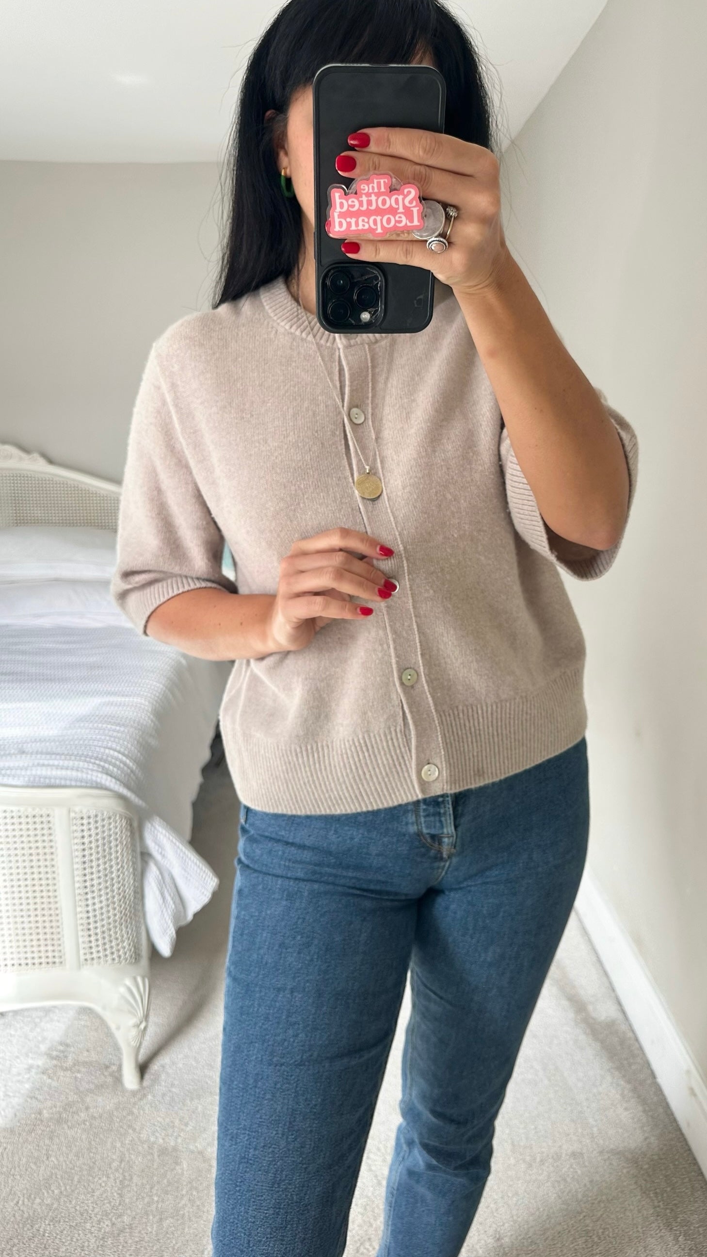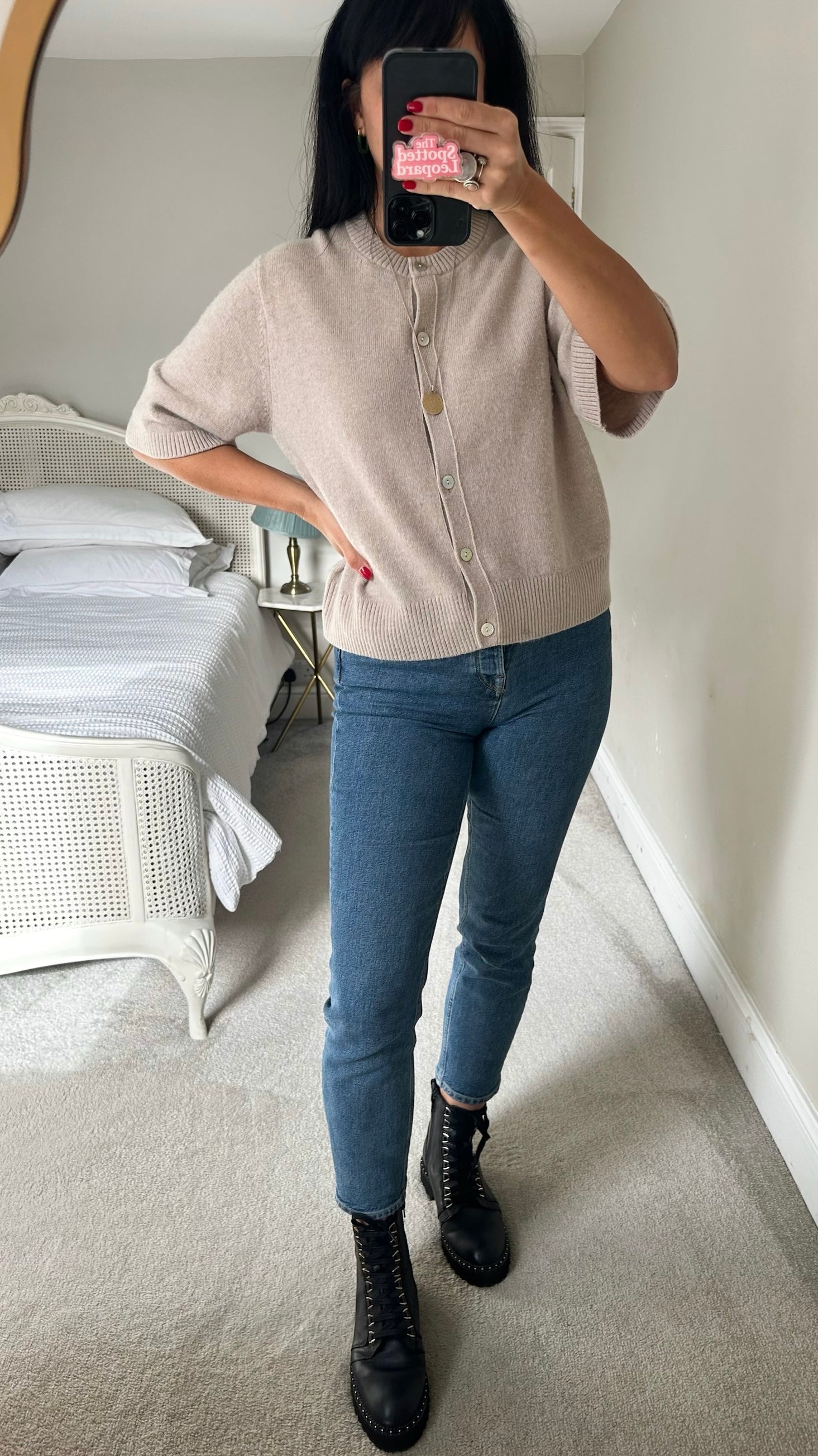 & other stories beige pure wool short sleeve knitted cardigan medium UK 10 vgc