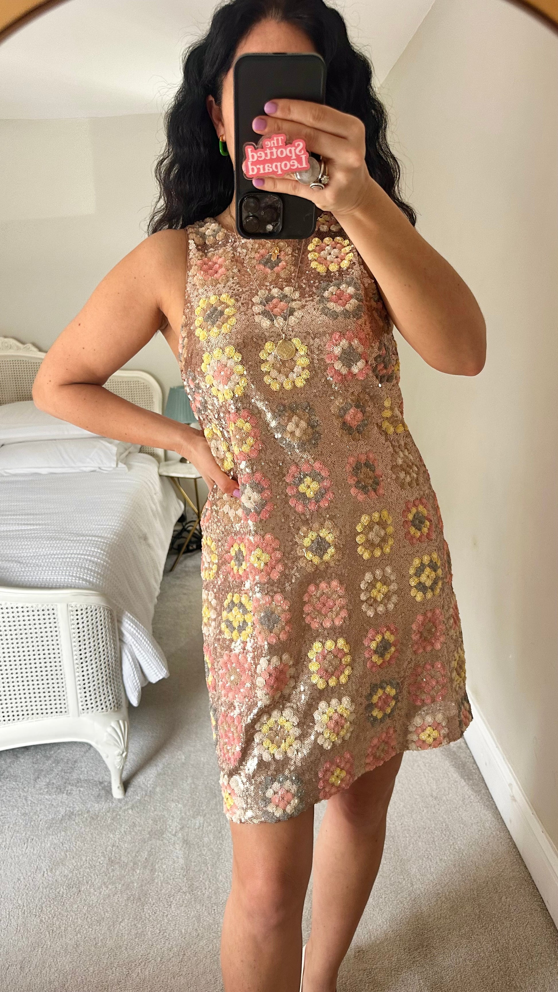 & other stories gold pink sequin event mini dress medium UK 12 new bnwot