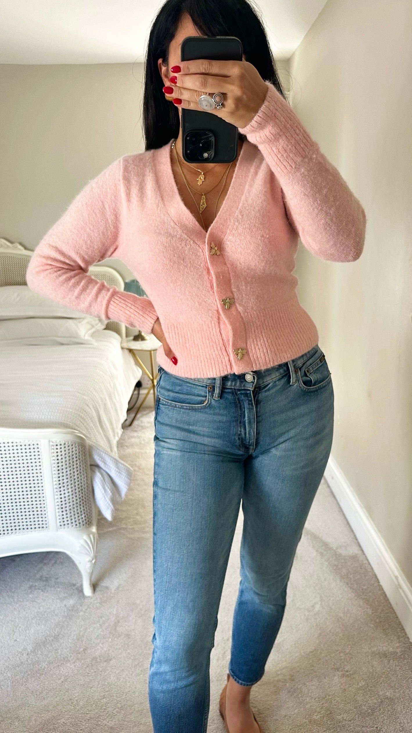 beautiful light pink bumblebee button alpaca blend cardigan 🖤 in as new condition