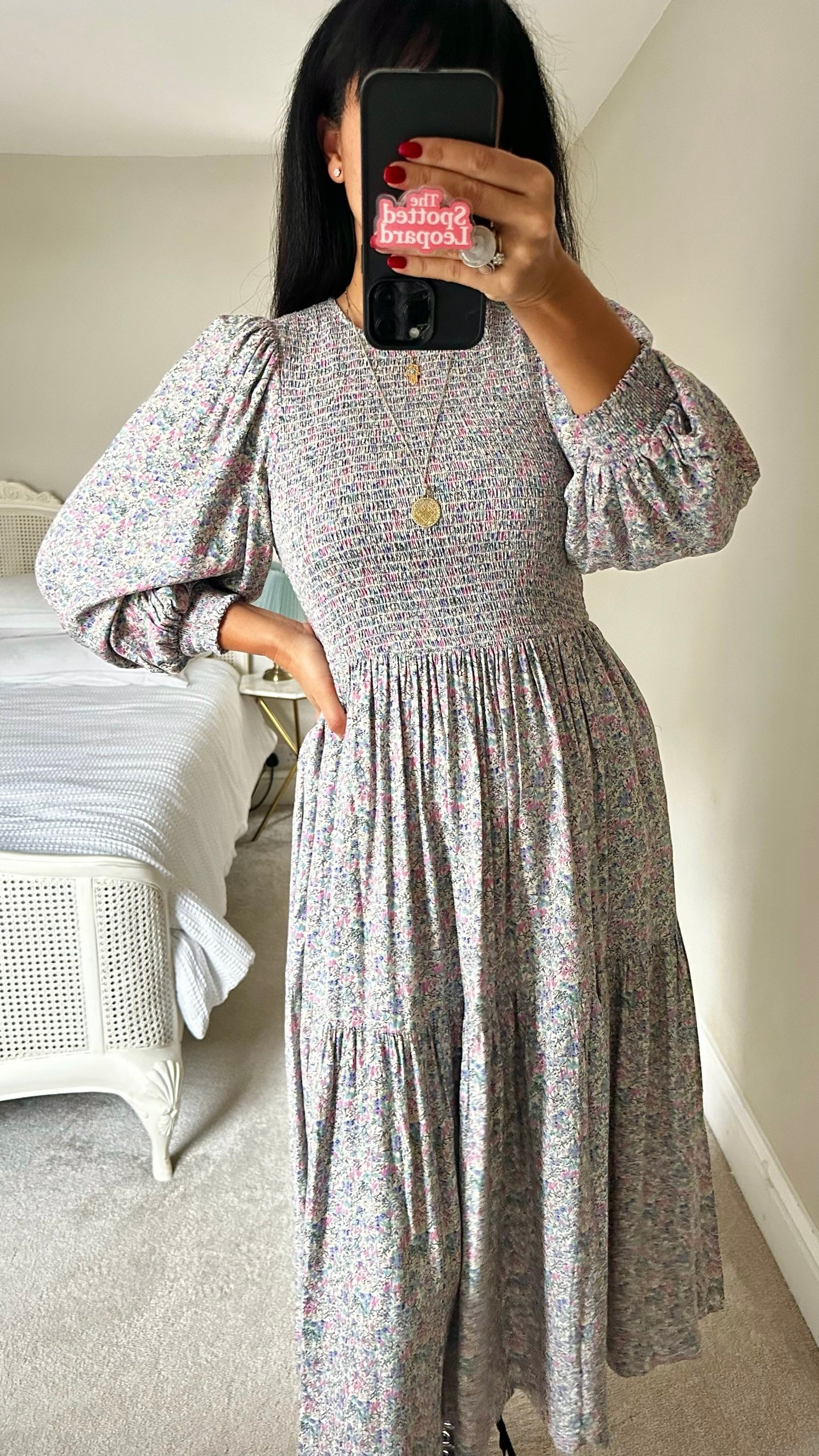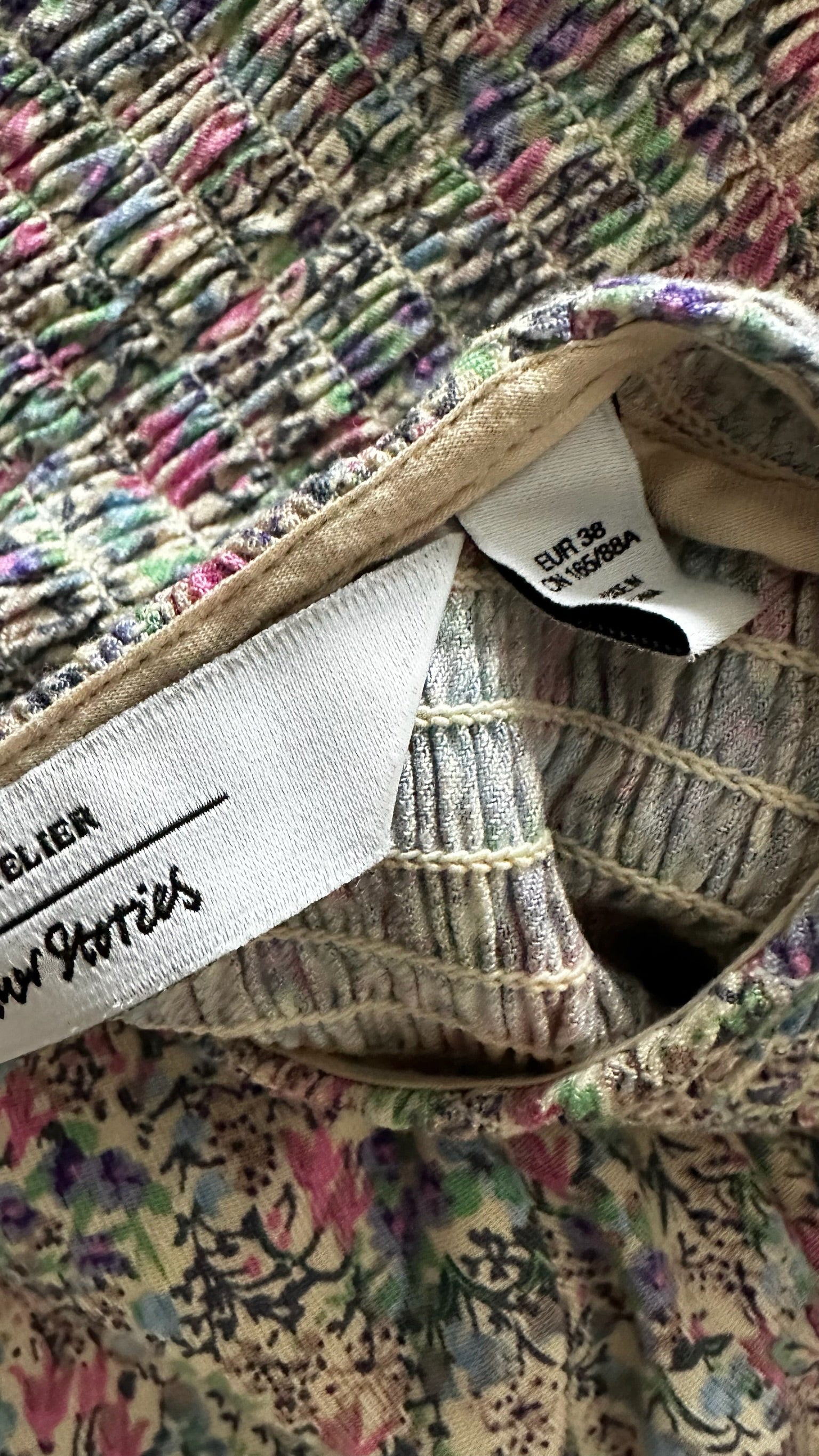 & other stories lilac pink turquoise tiered shirred prairie dress medium UK 10 vgc