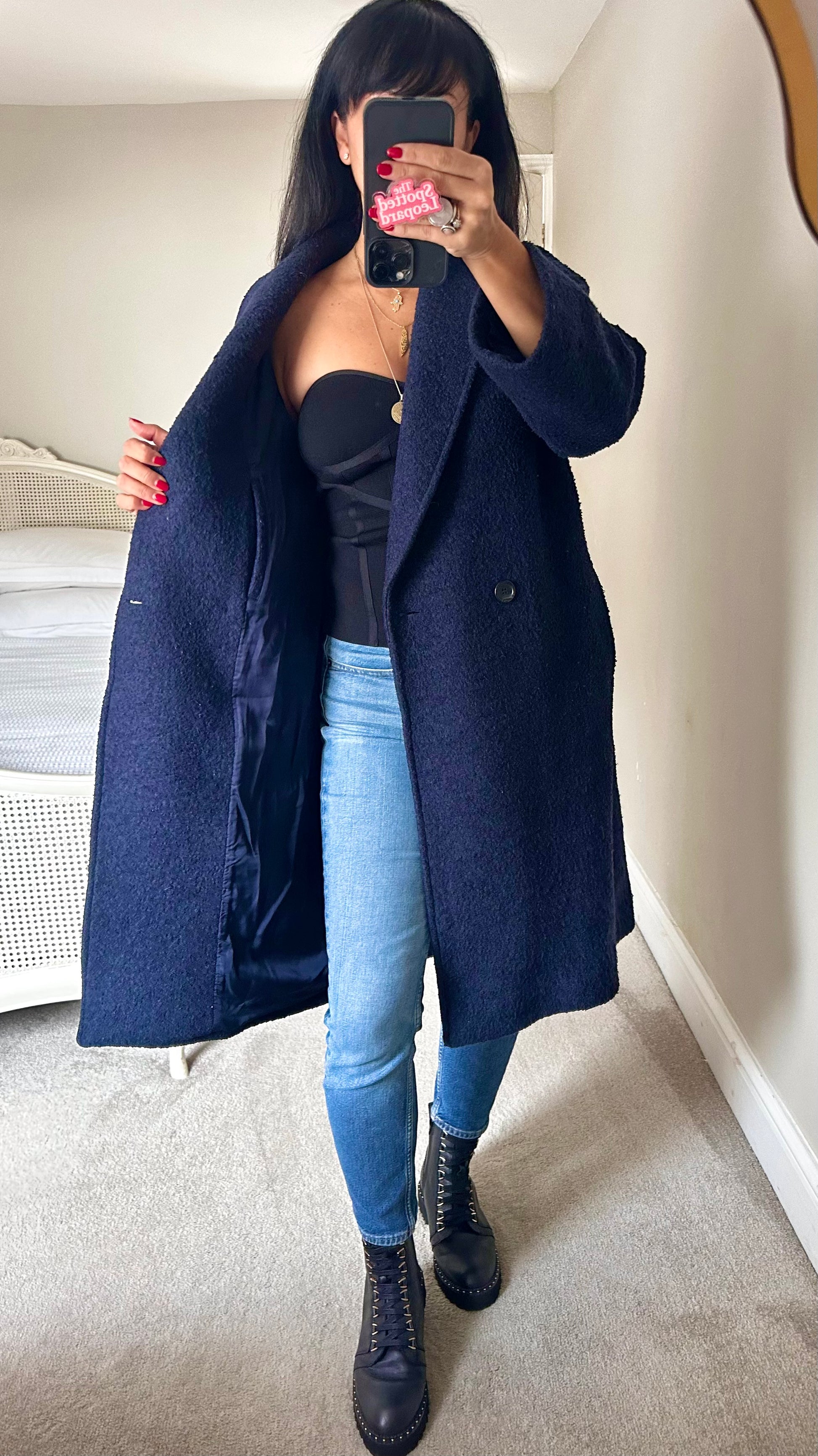 & other stories navy blue wool blend coat jacket medium large UK 10-12 vgc
