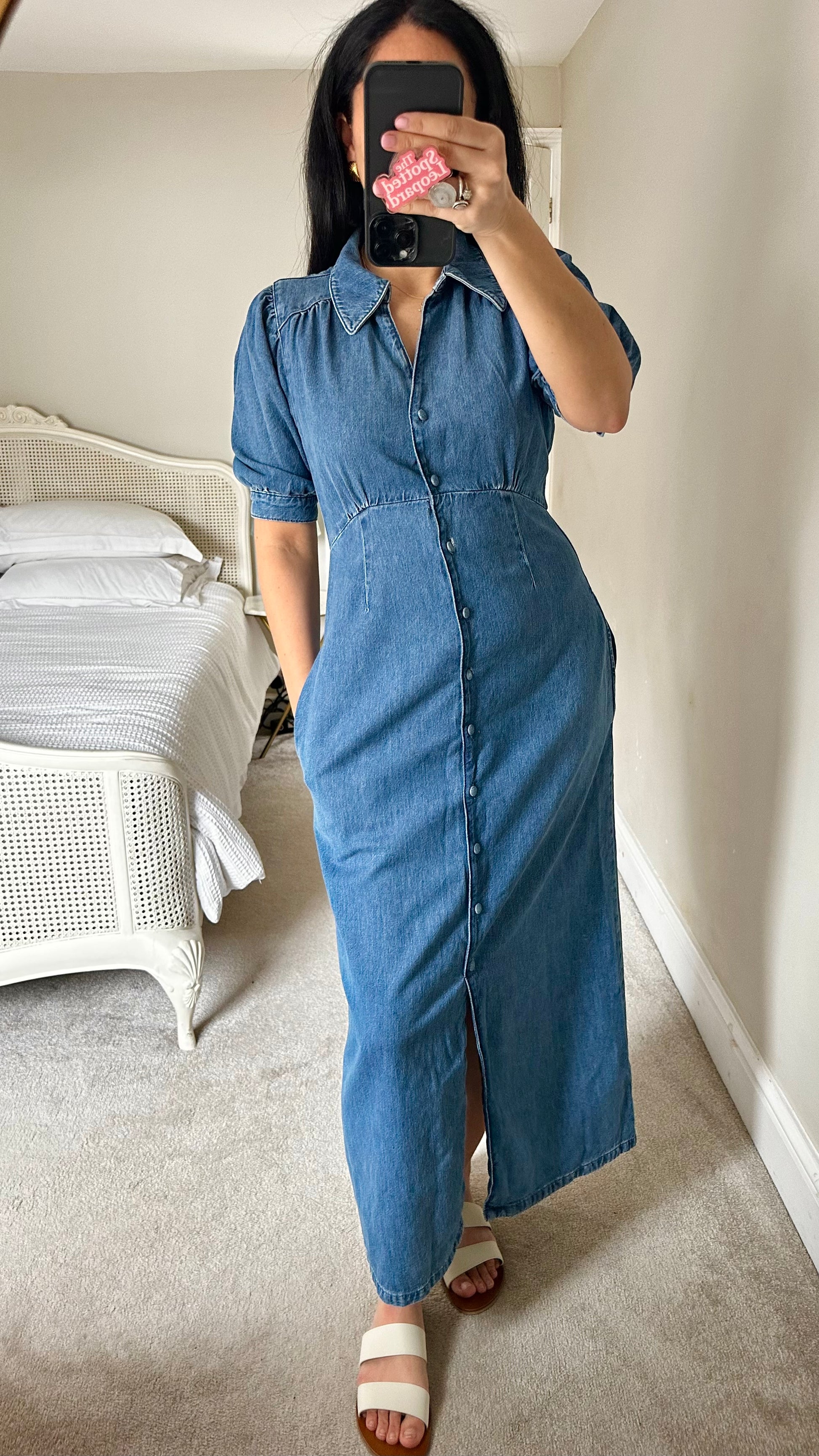 Phase Eight denim jeans blue button up casual midi dress small UK 10 vgc