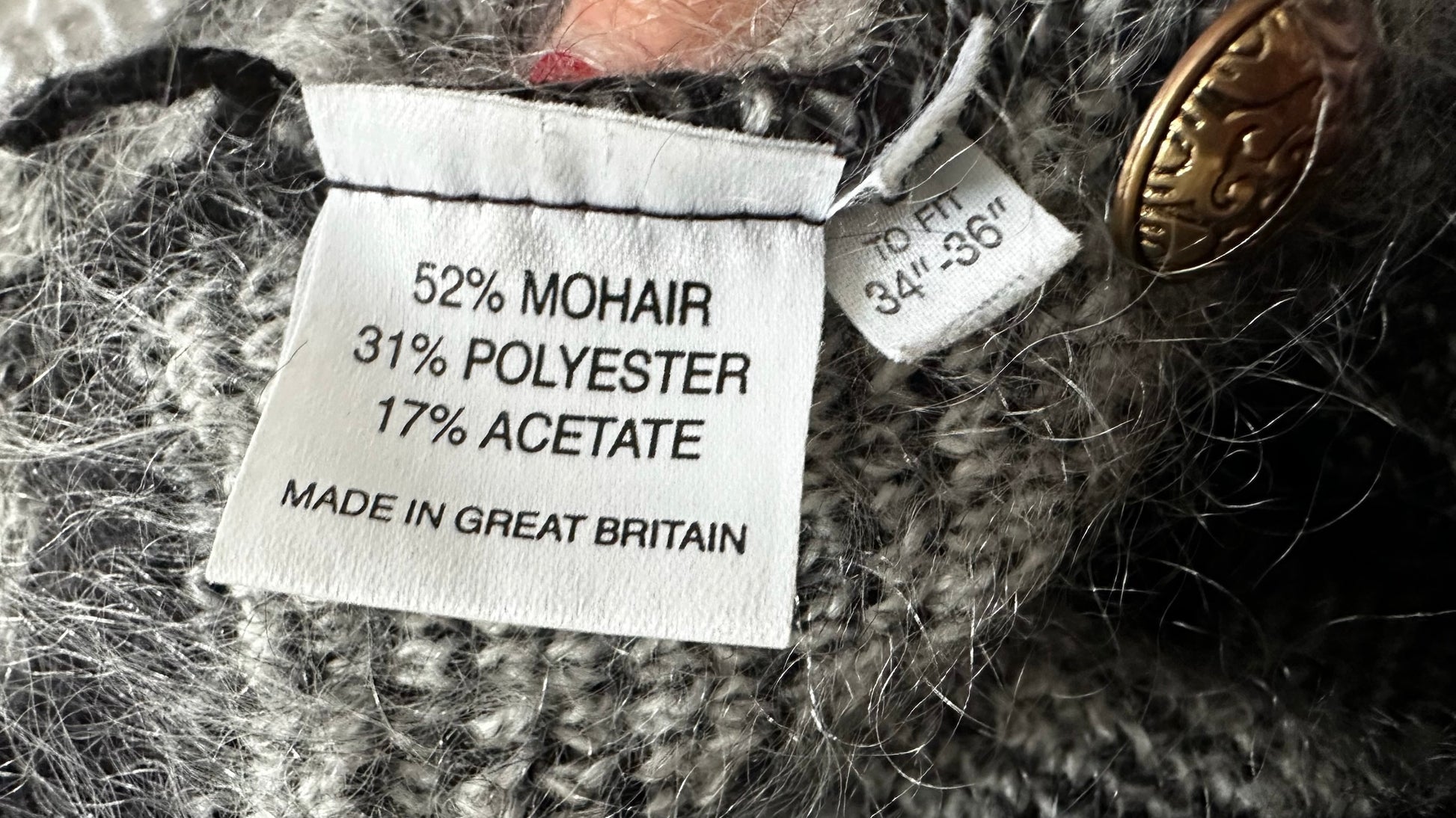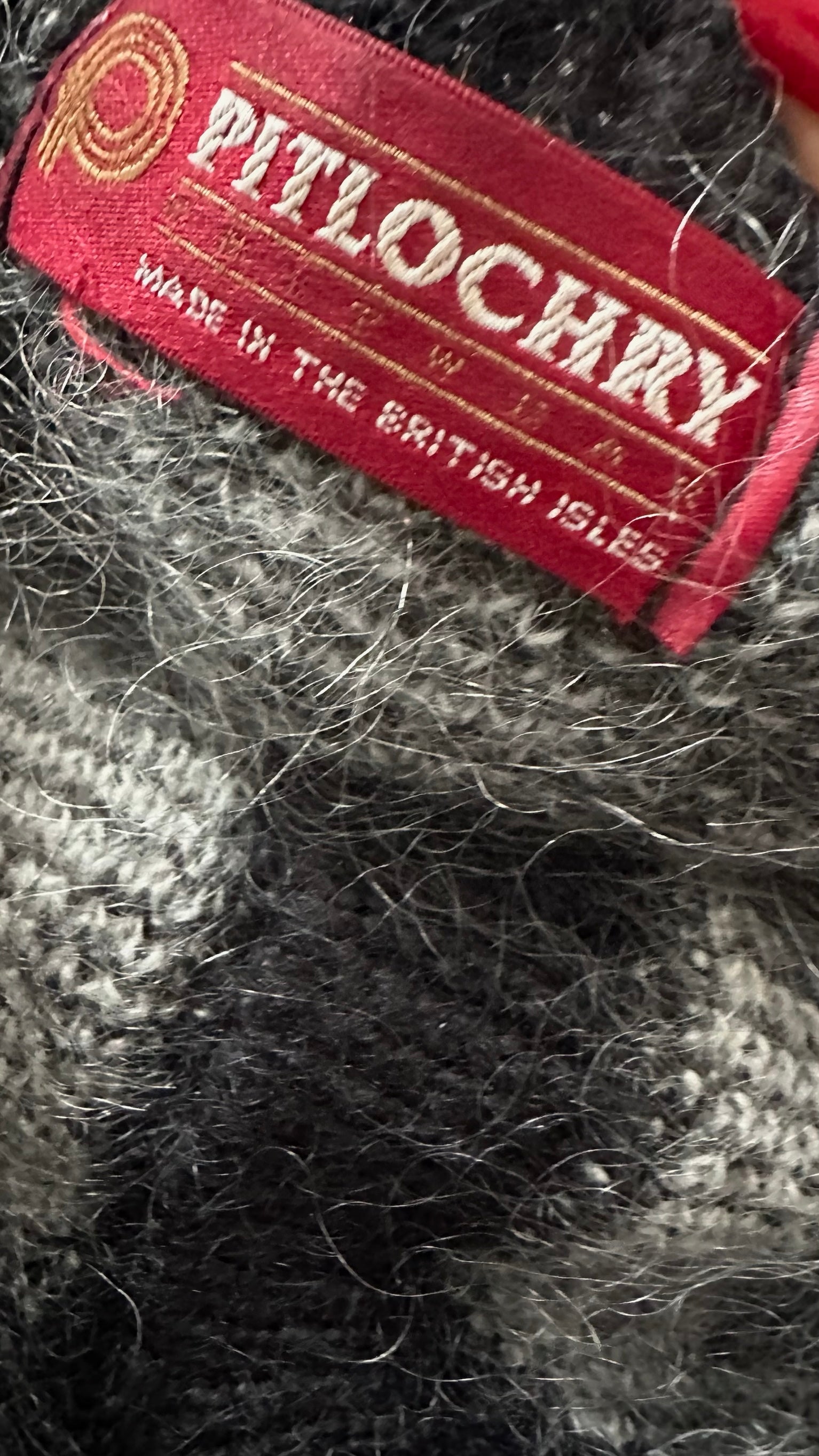 Pitlochry black grey monochrome vintage mohair blend button up cardigan small medium SM 8-10