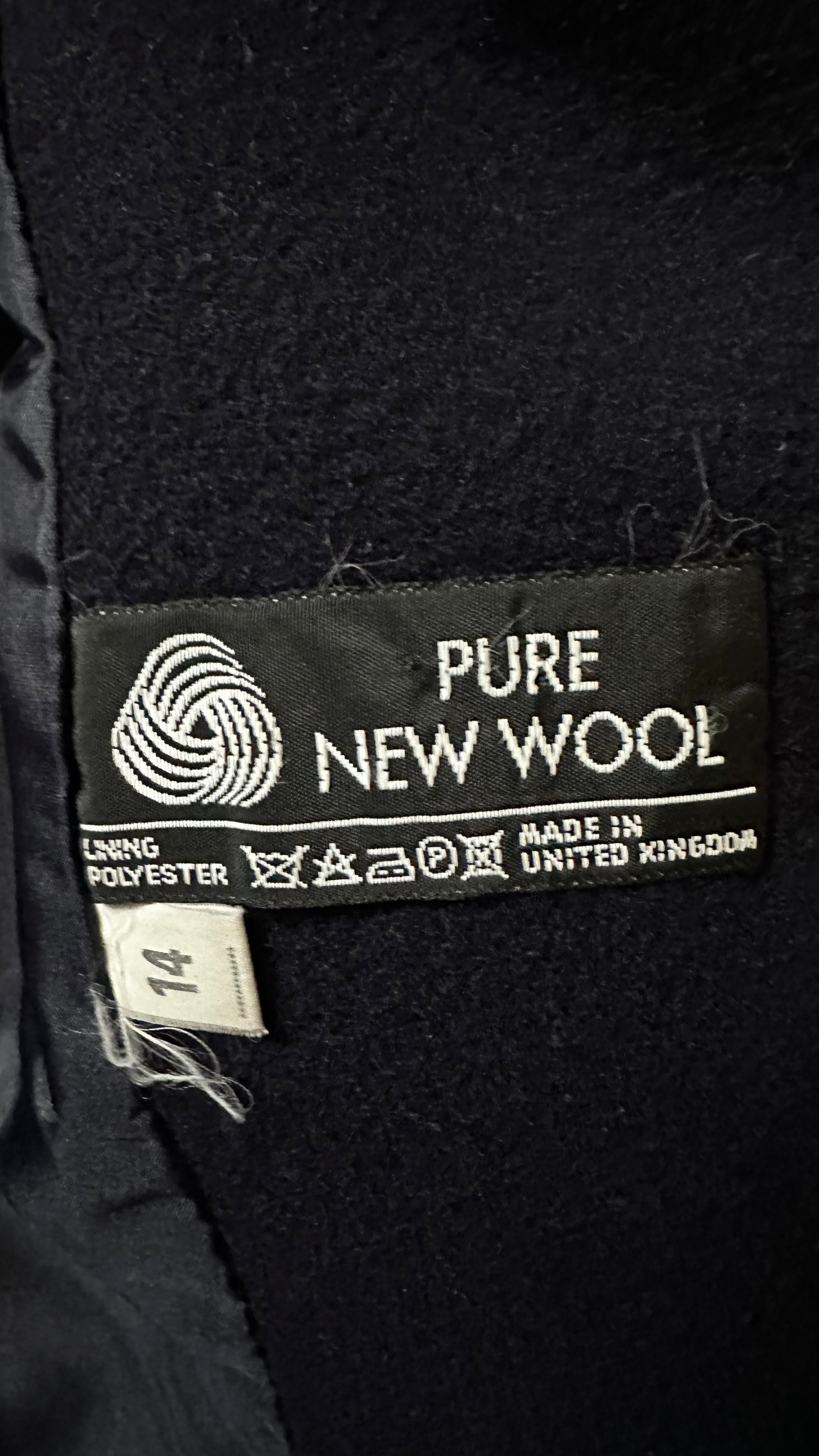 Planet vintage navy blue pure wool coat jacket extra large UK 14 vgc long