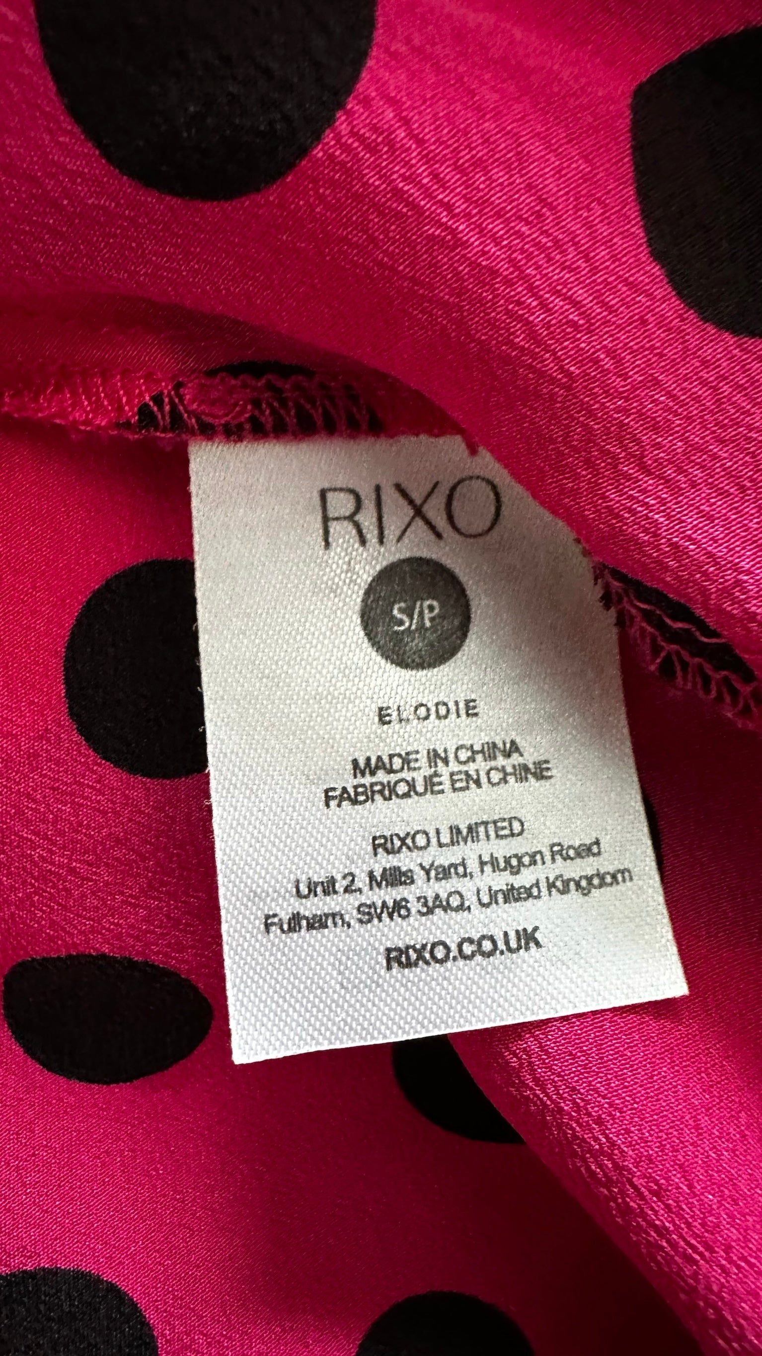 RIXO fuchsia pink black polka dot front split long event dress medium M UK 10 excellent used condition