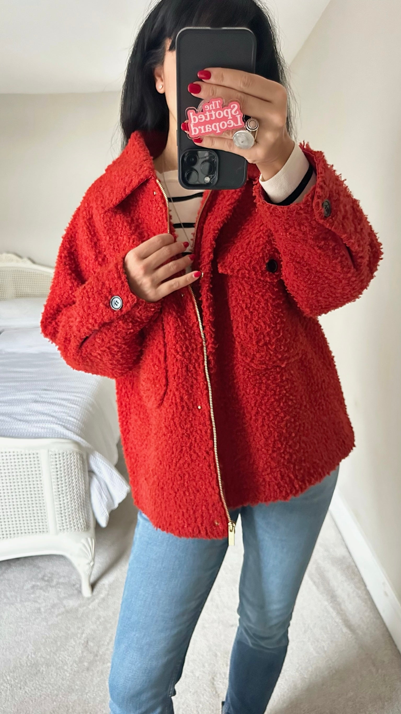 Gorgeous bright red coat - no size label ❤️ boots also listed