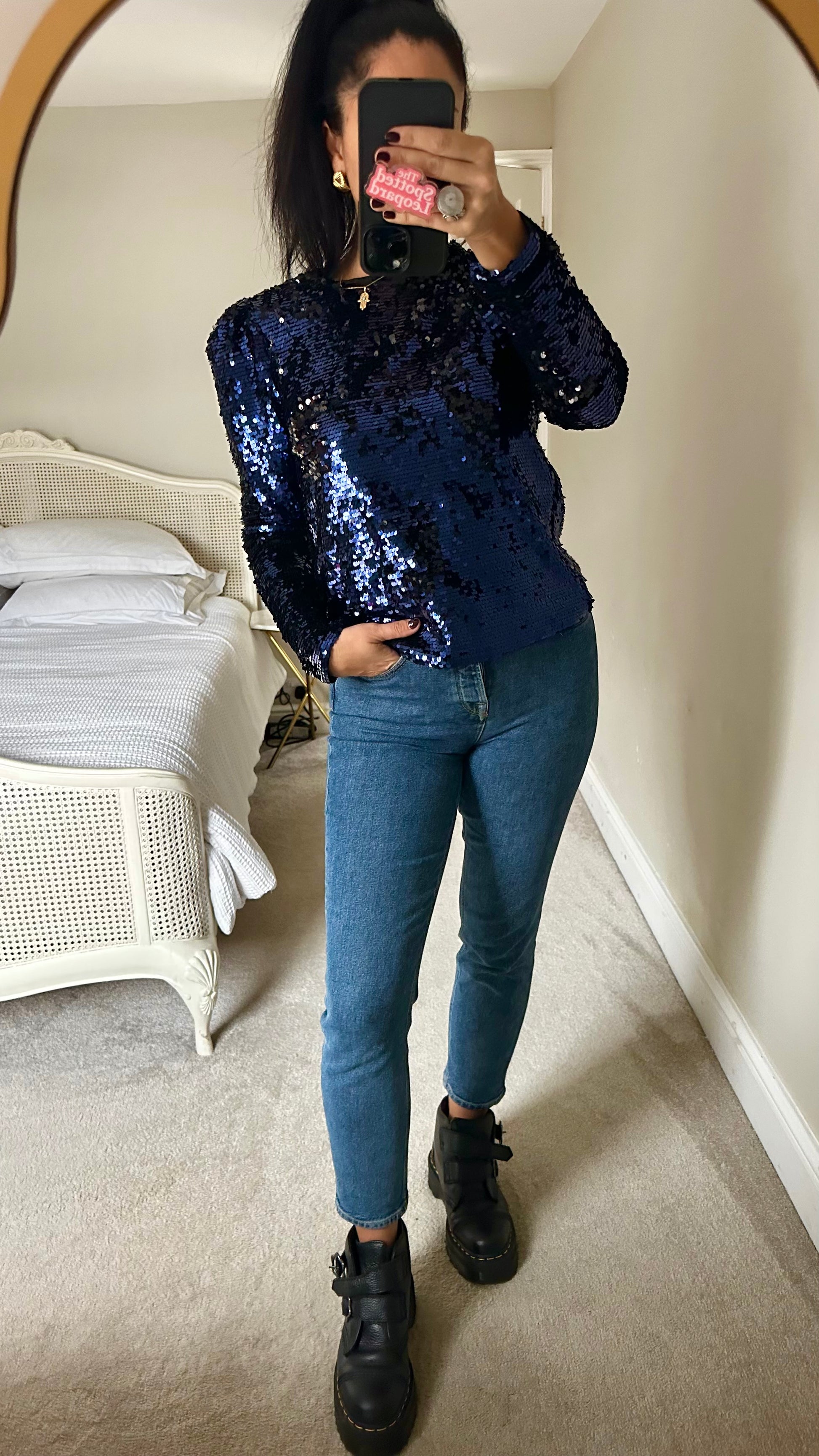 Selected Femme @ Anthropologie navy blue sequin Christmas top small new bnwt UK 8 XMS25