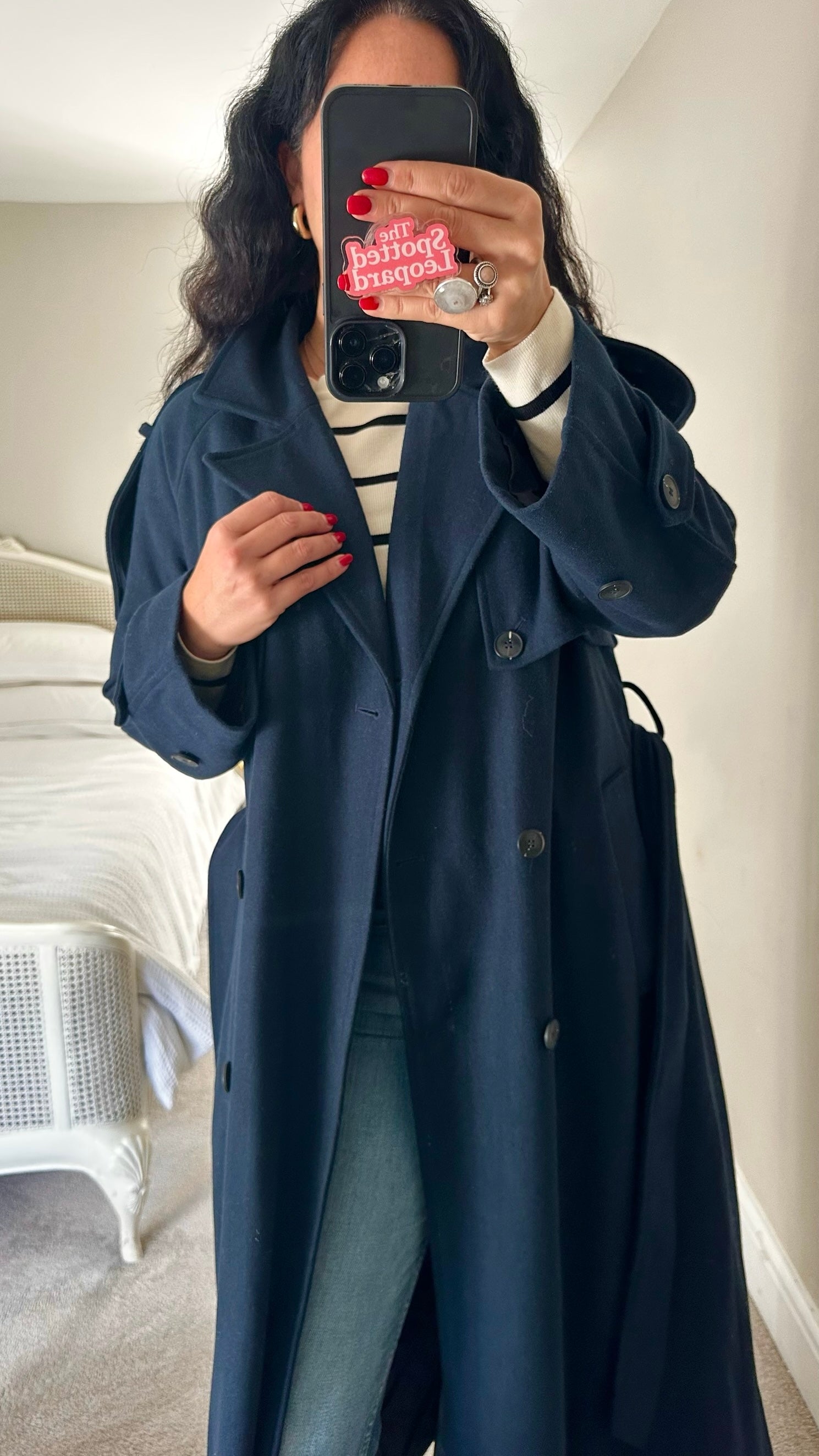 Fabulous navy wool blend maxi coat in new condition ❤️ please note the belt shown was misplaced in storage and cannot be located - RRP £180