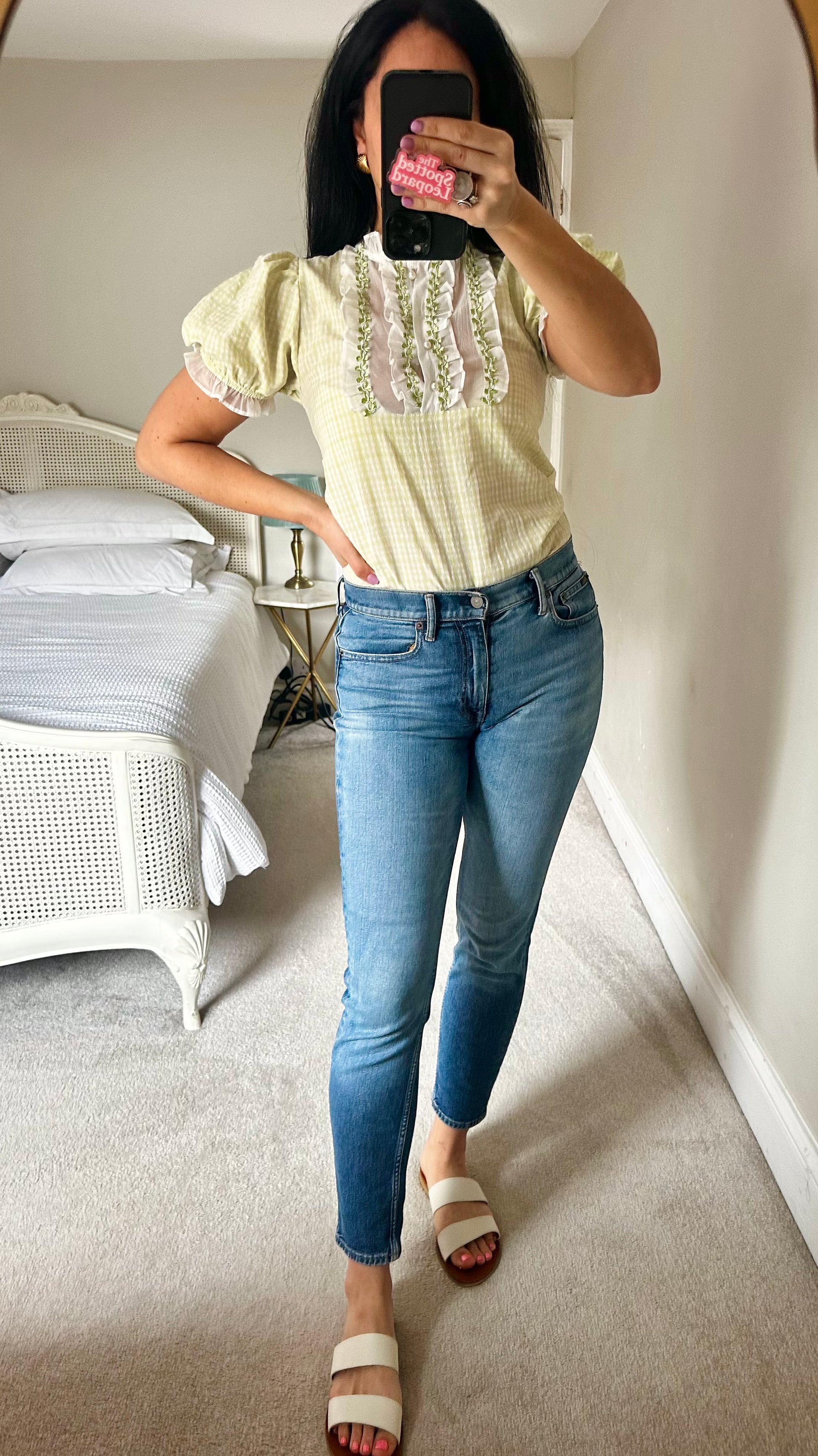 Sister Jane green white gingham check shirt top small UK 8 vgc
