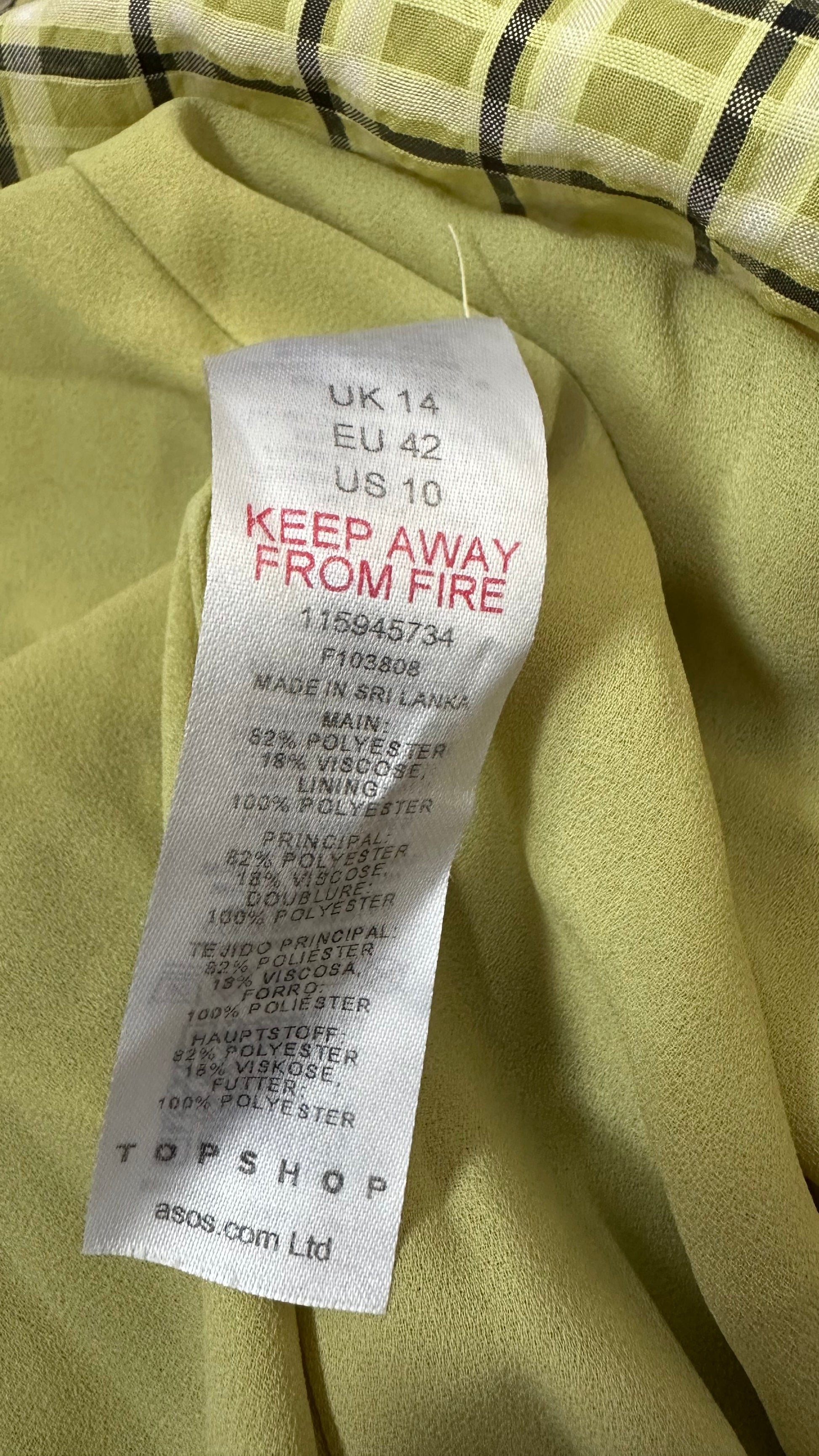 Topshop acid yellow green gingham check long midi dress medium UK 14 vgc