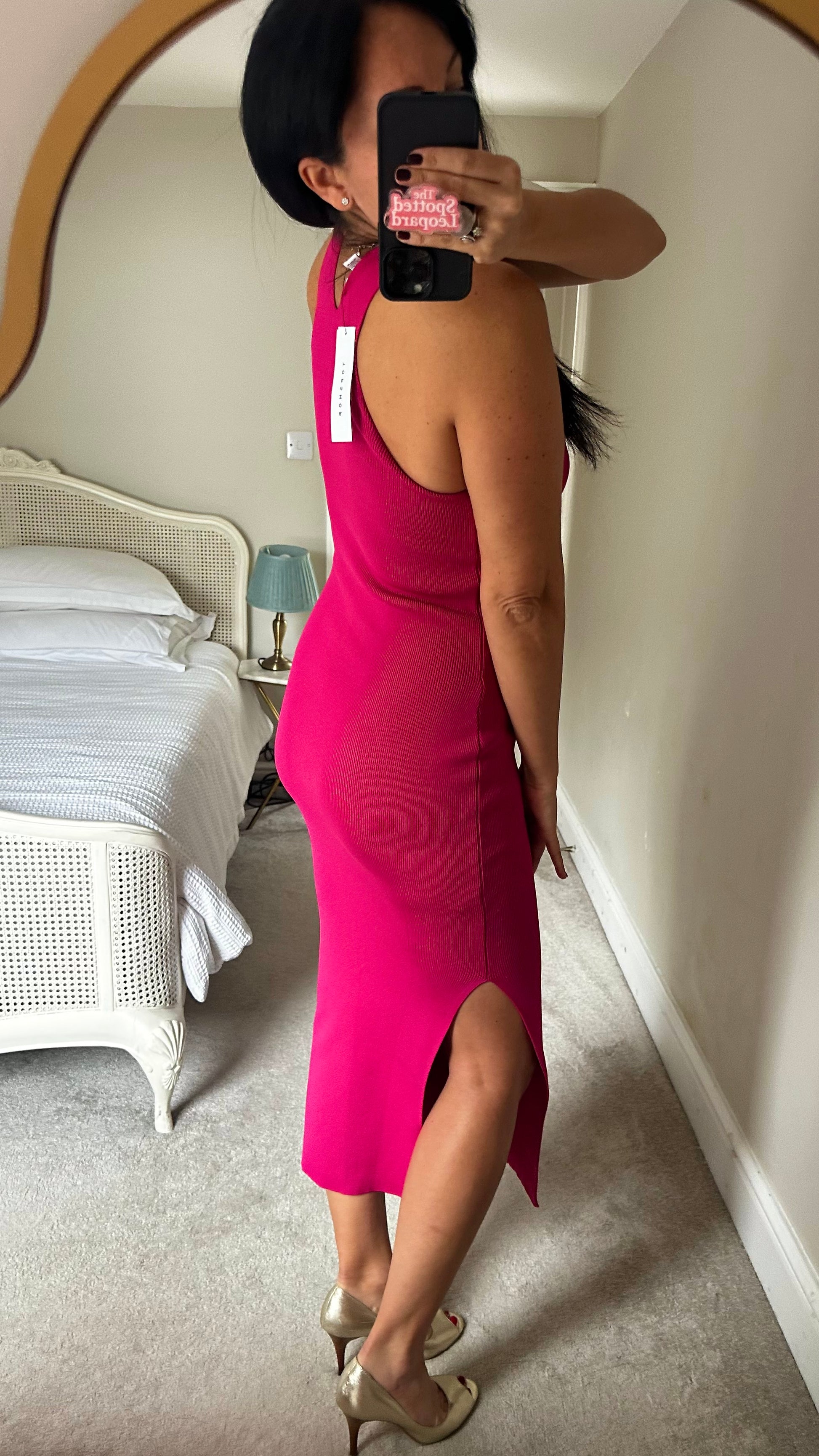 Topshop fuschia pink ribbed evening dress large UK 12 new bnwt XMS25 Christmas event
