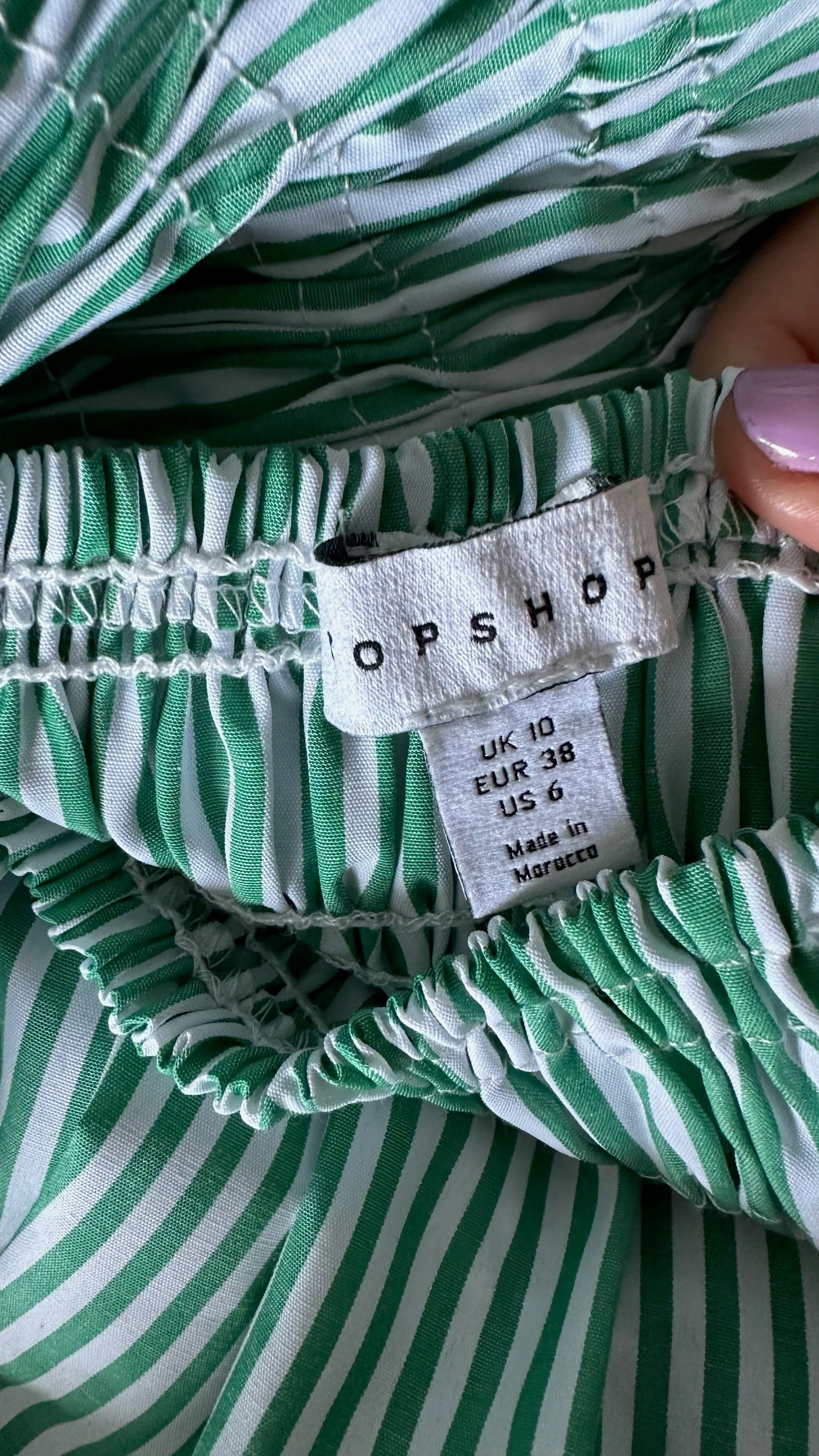 Topshop green white stripe shirred bust midi sundress UK 12-14 vgc