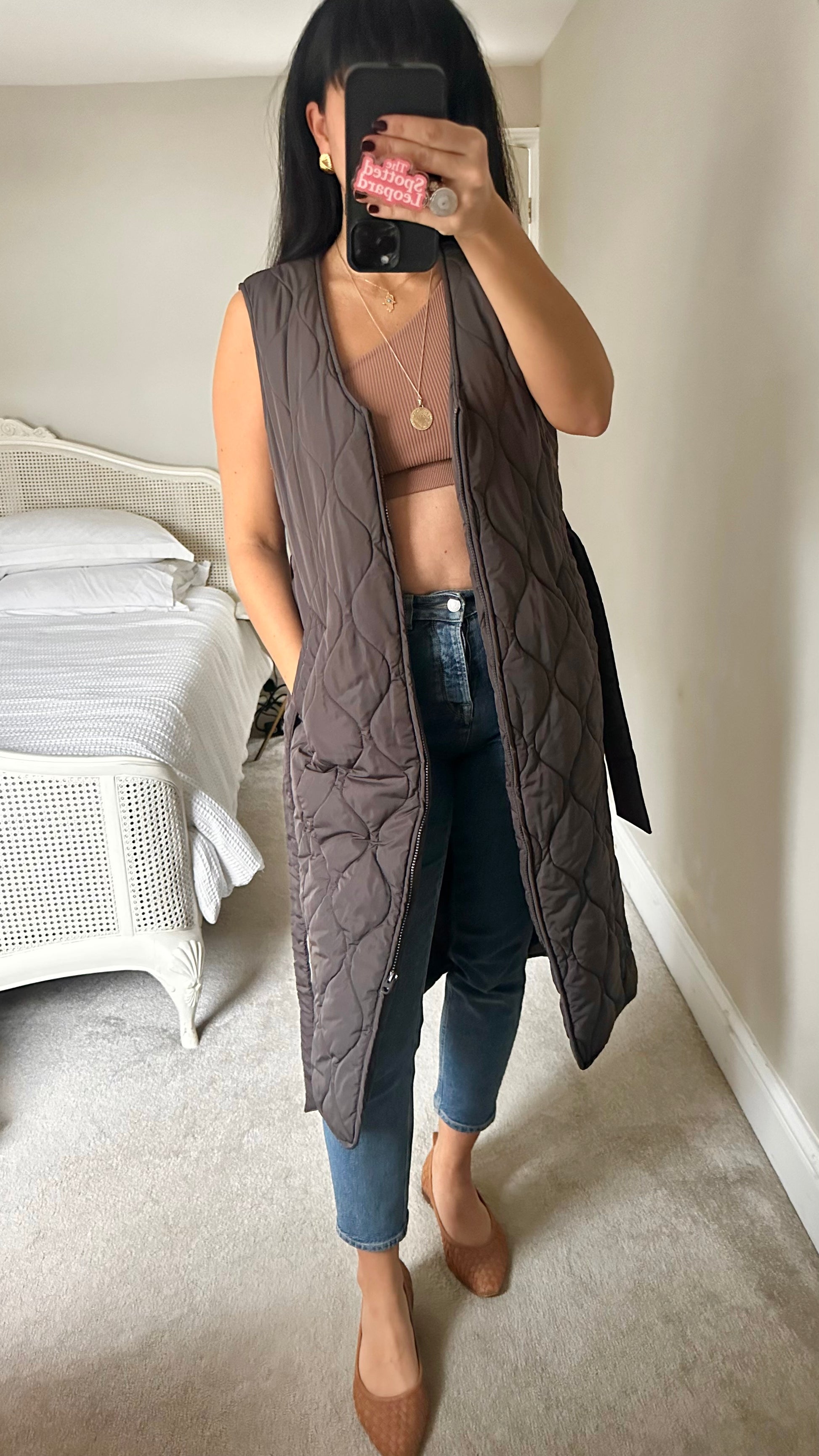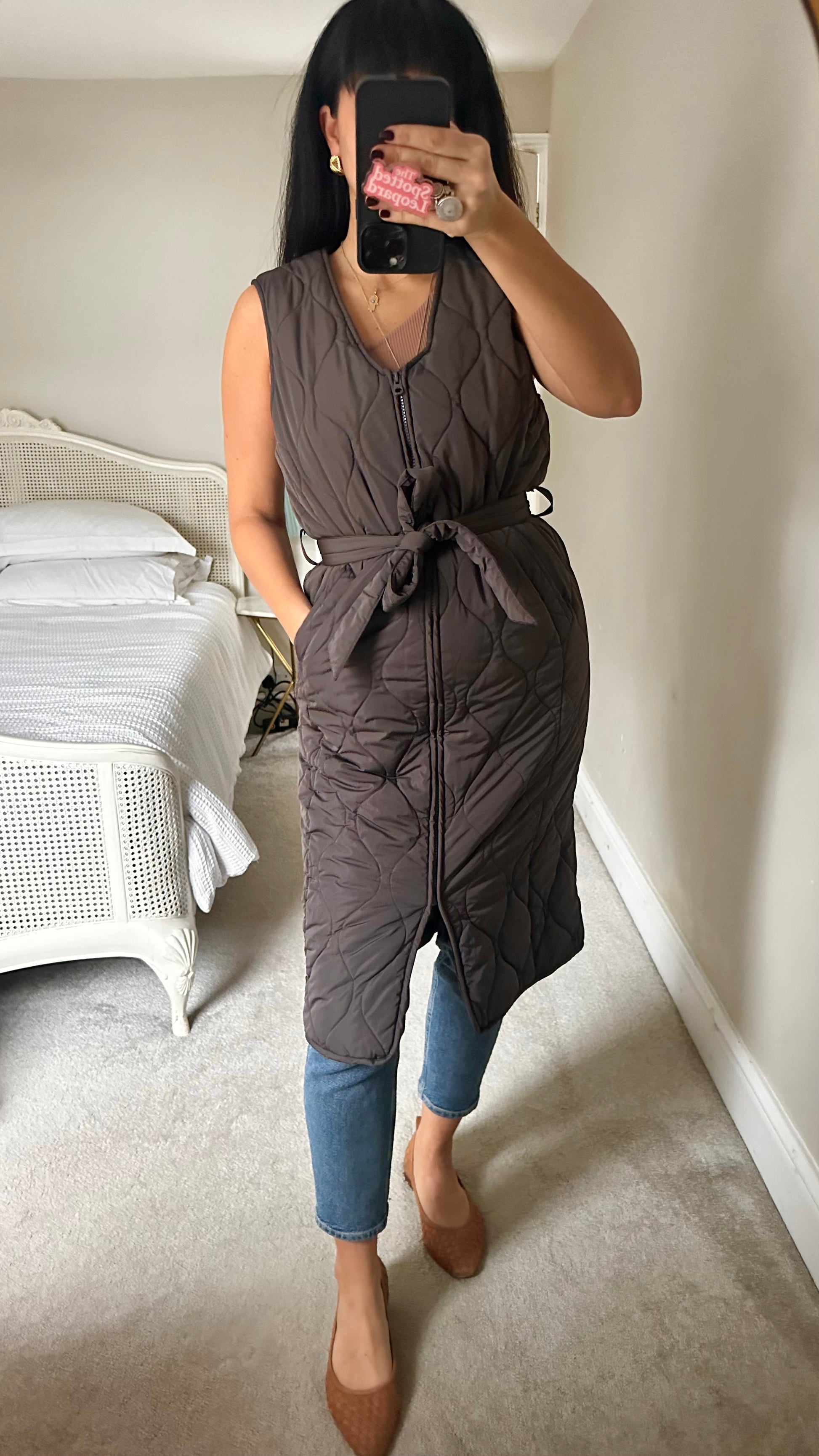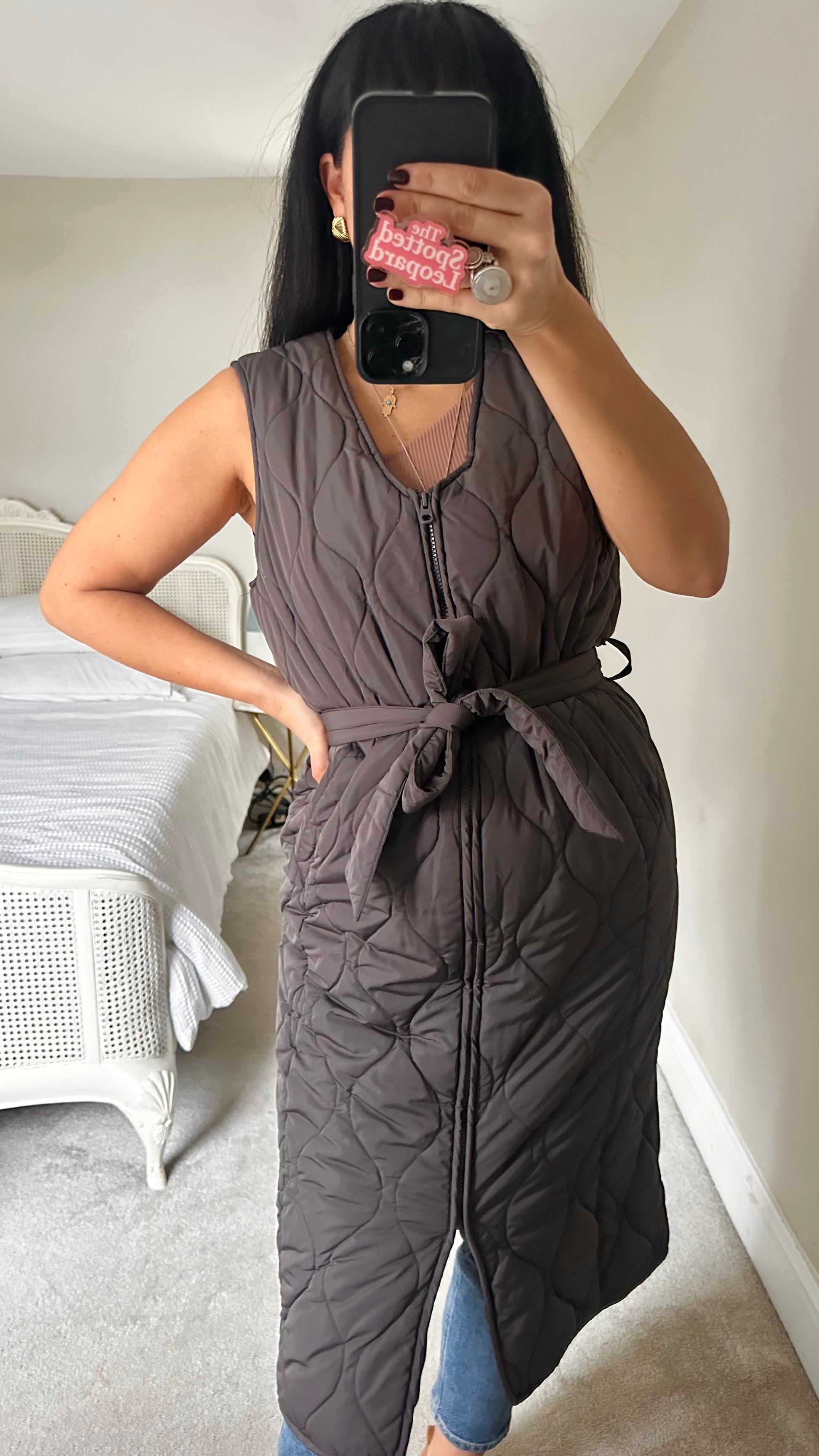 Nobody’s Child brown quilted zip up coat waist coat gilet small UK 8 vgc