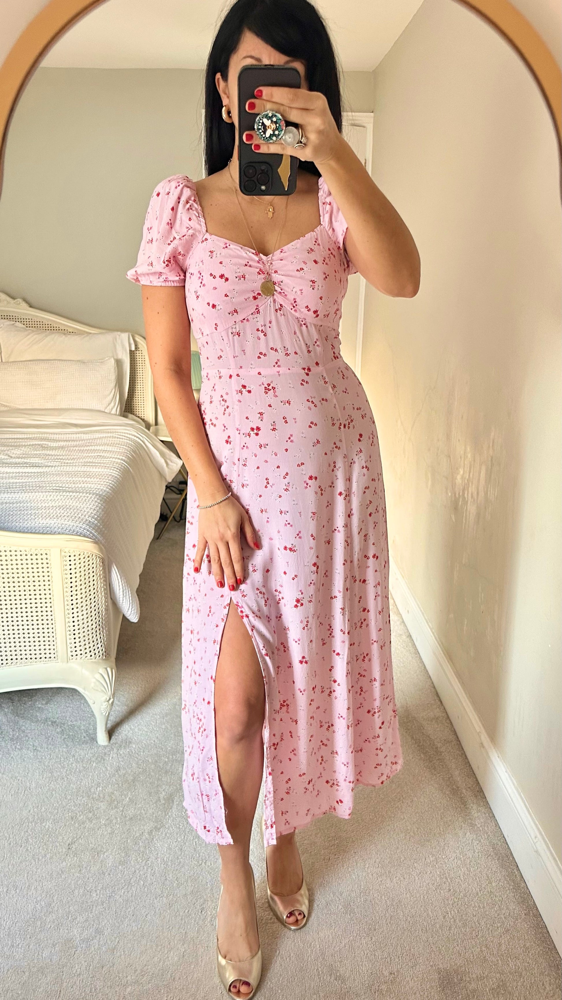 & other stories light pink red floral side split midi wedding guest dress new UK 6 12-14
