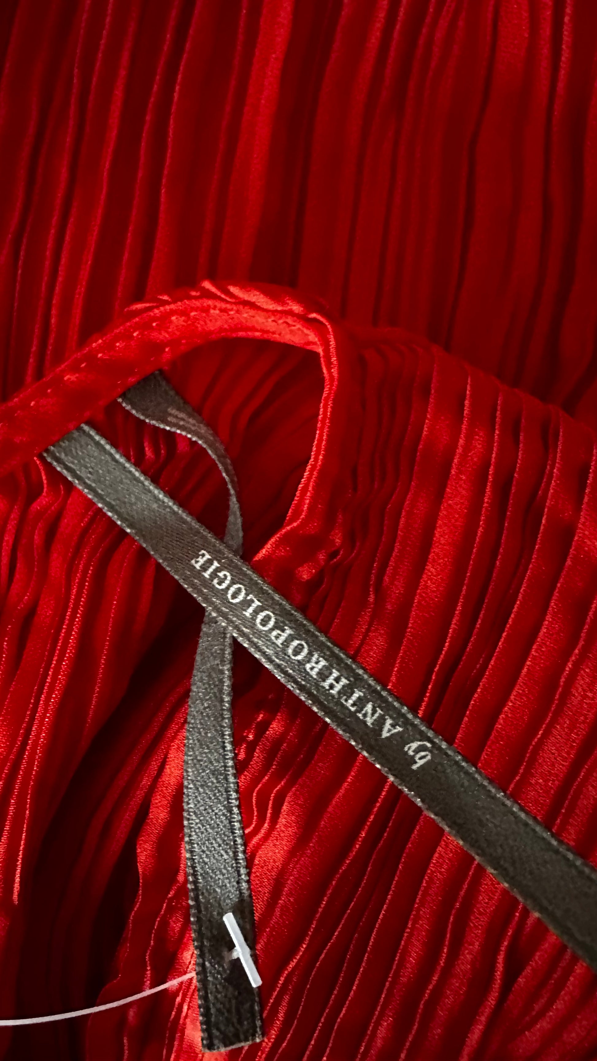Anthropologie coral red plissé midi event wedding guest dress small UK 6-8-10 new bnwt