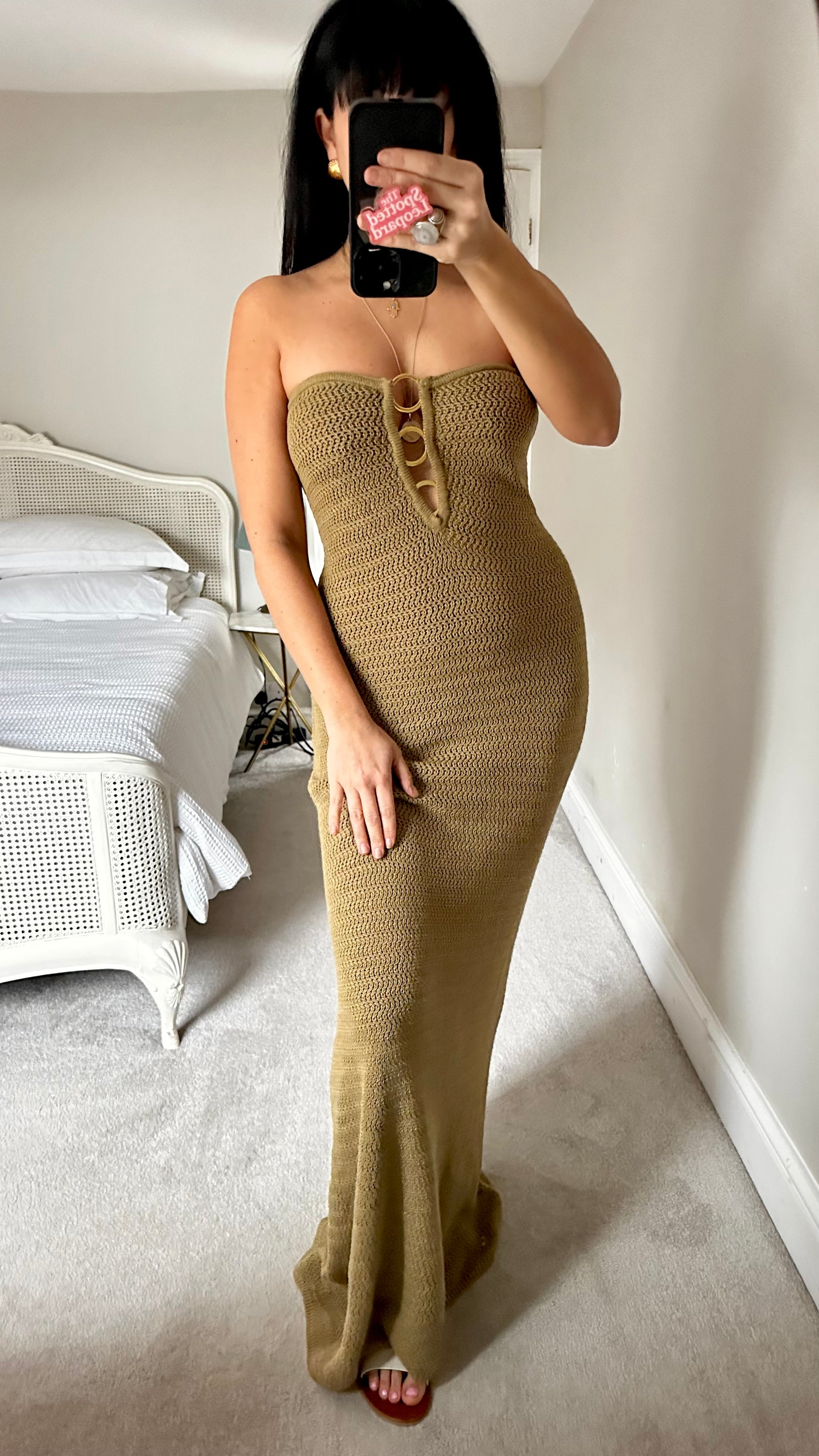 4th & Reckless khaki gold crochet knitted strapless holiday dress maxi long large UK 14 new bnwt