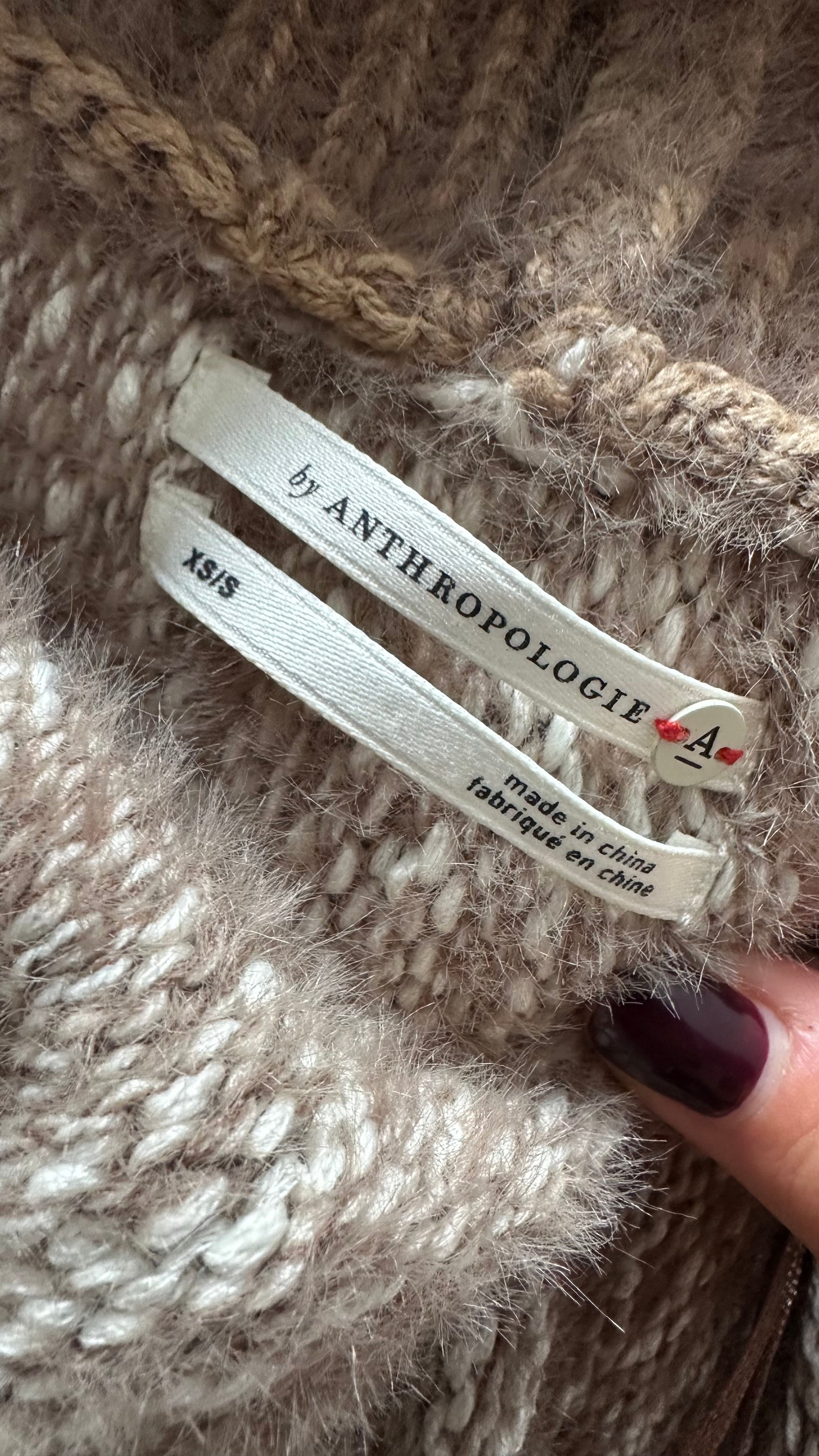 Anthropologie beige cream brown cardigan jumper knitted small medium UK 10 new