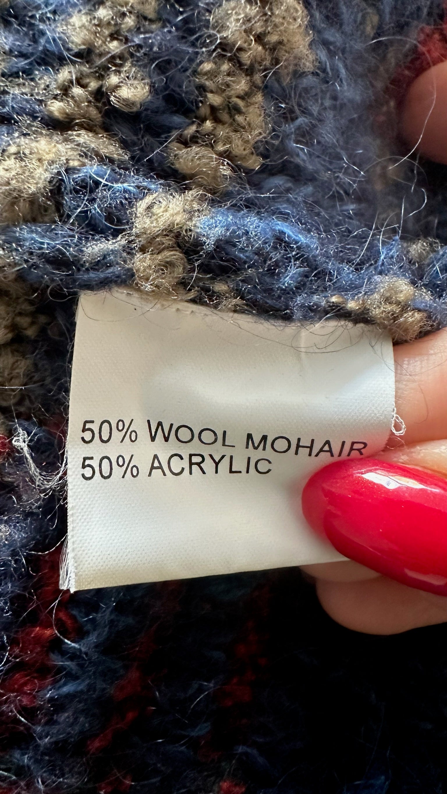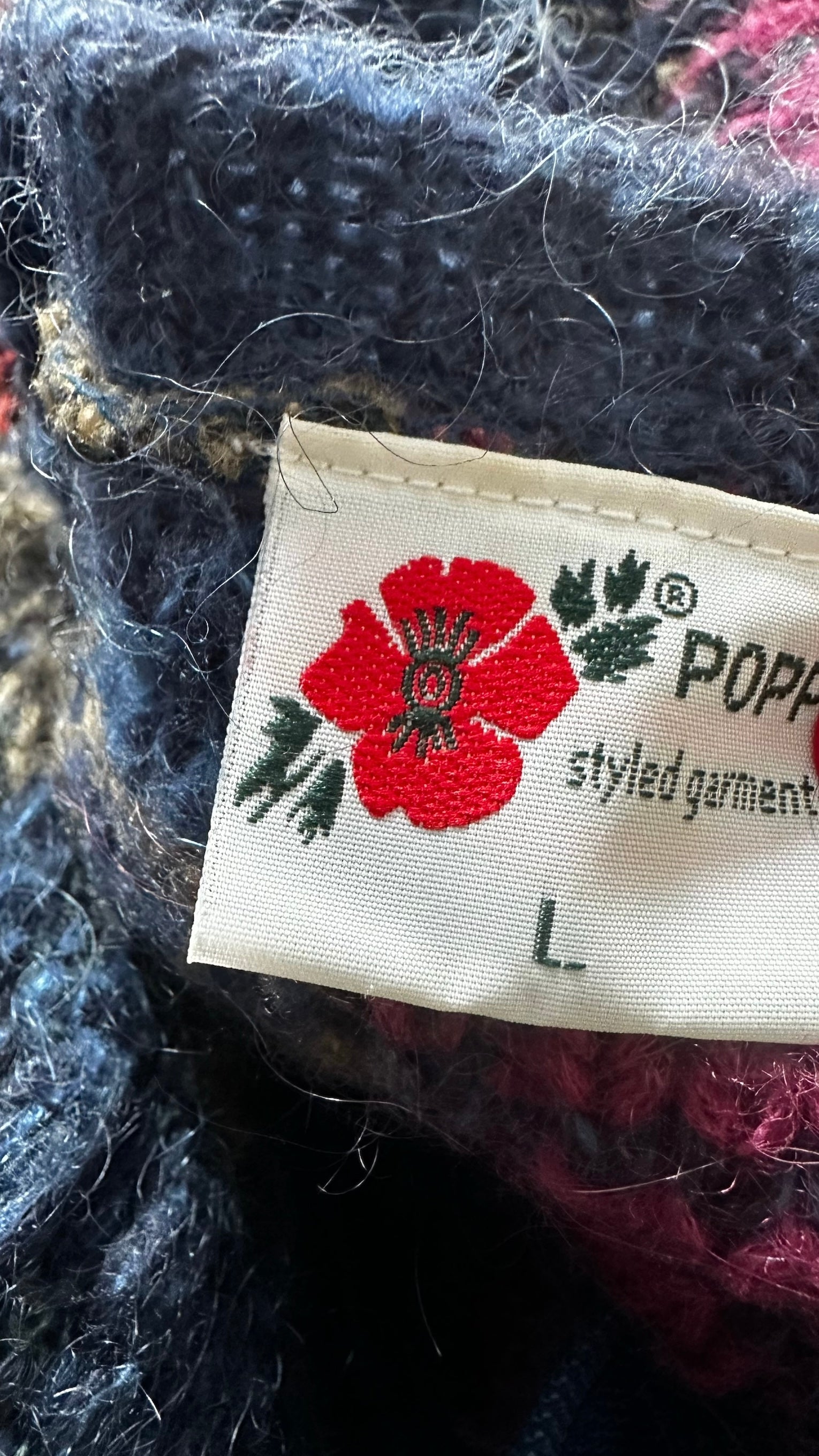 Vintage mohair blend navy patterned knitted cardigan large UK 10-12 vgc
