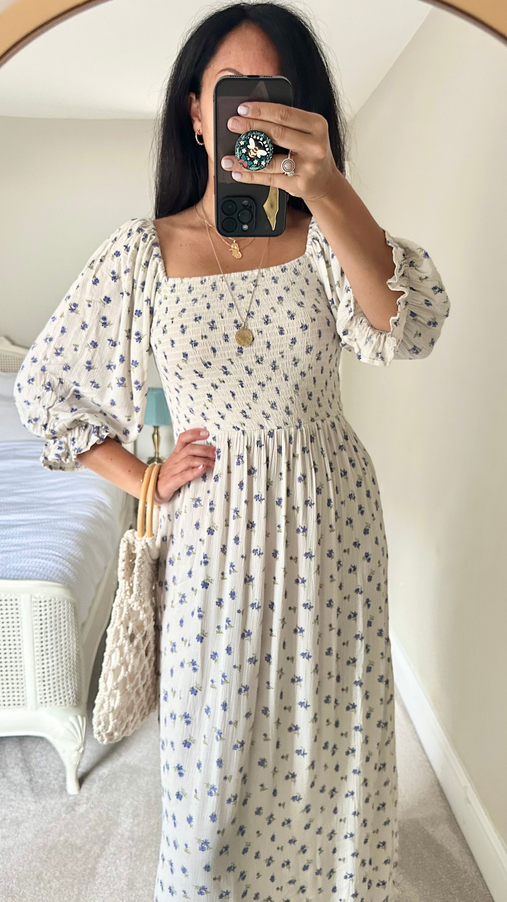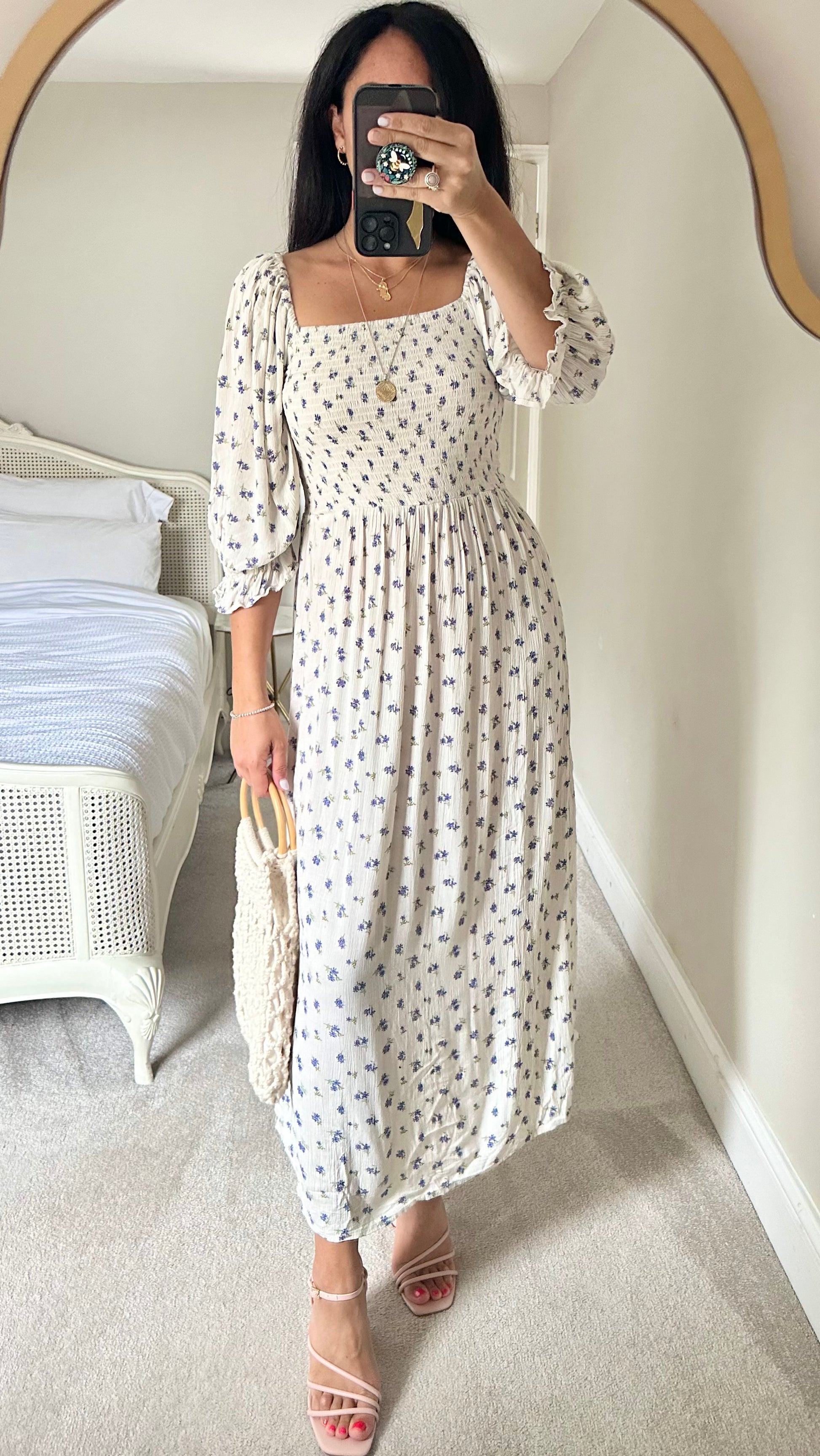Warehouse white blue floral ditsy midi maxi long dress extra small medium UK 6 12 vgc