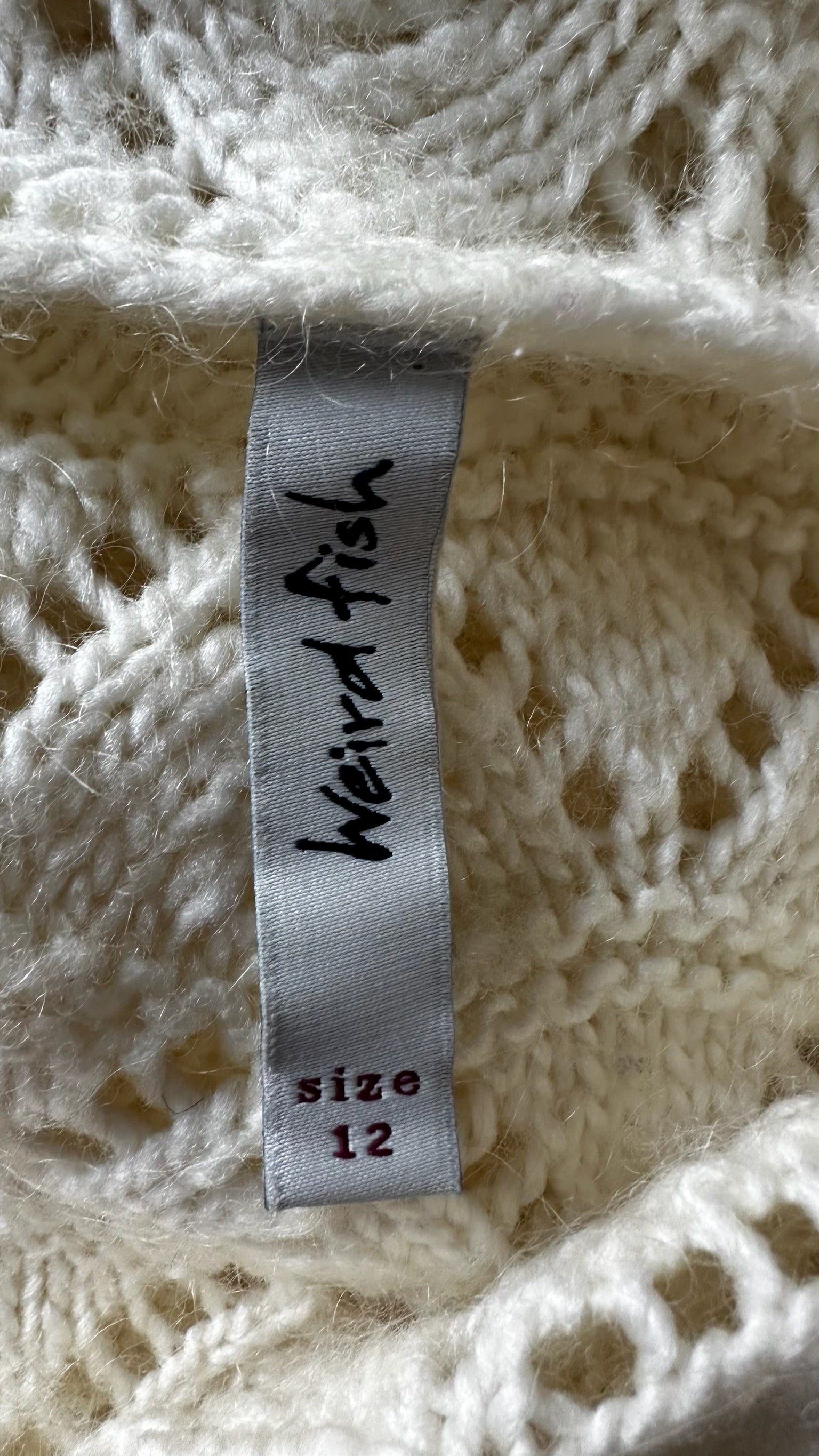 Weird fish cream white mohair wool blend crochet knit jumper UK 12 vgc XMS25