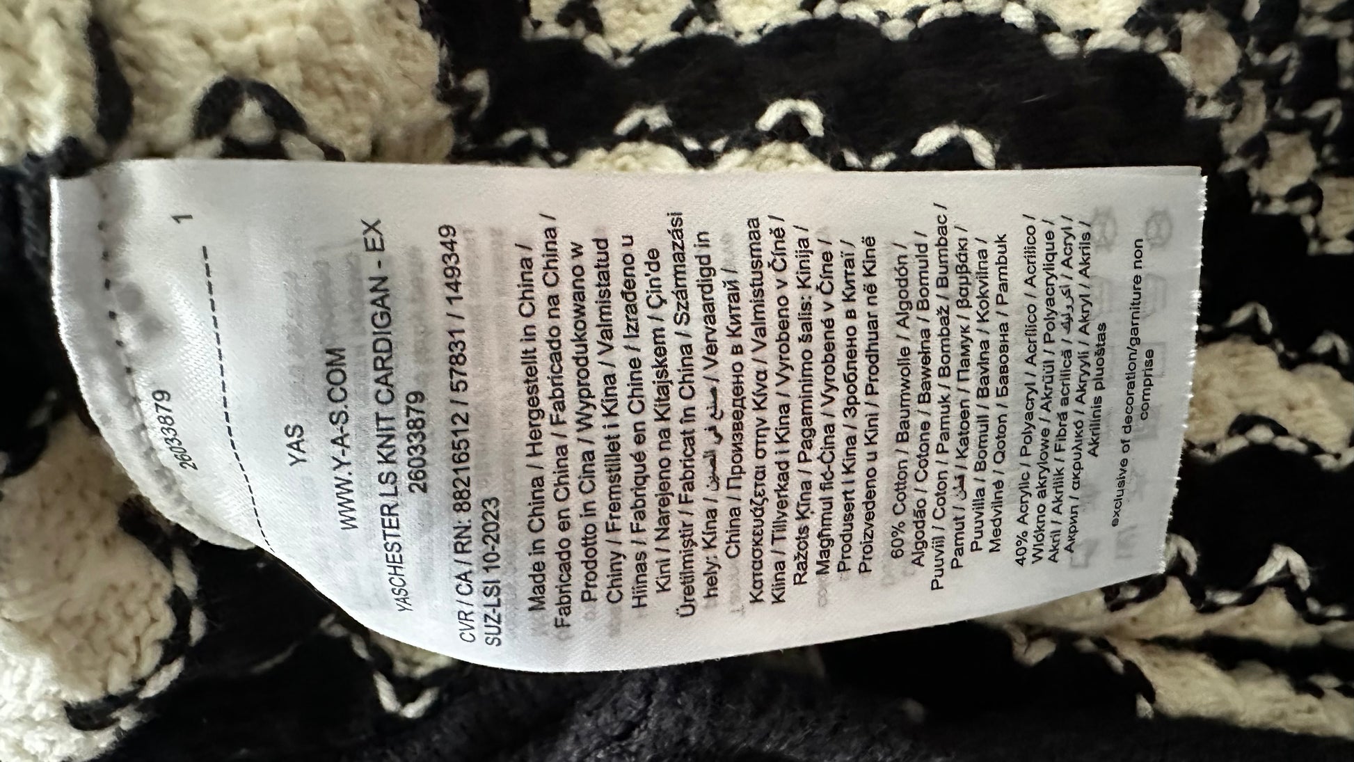YAS black cream stripe bubble knitted cardigan jumper large UK 12 vgc