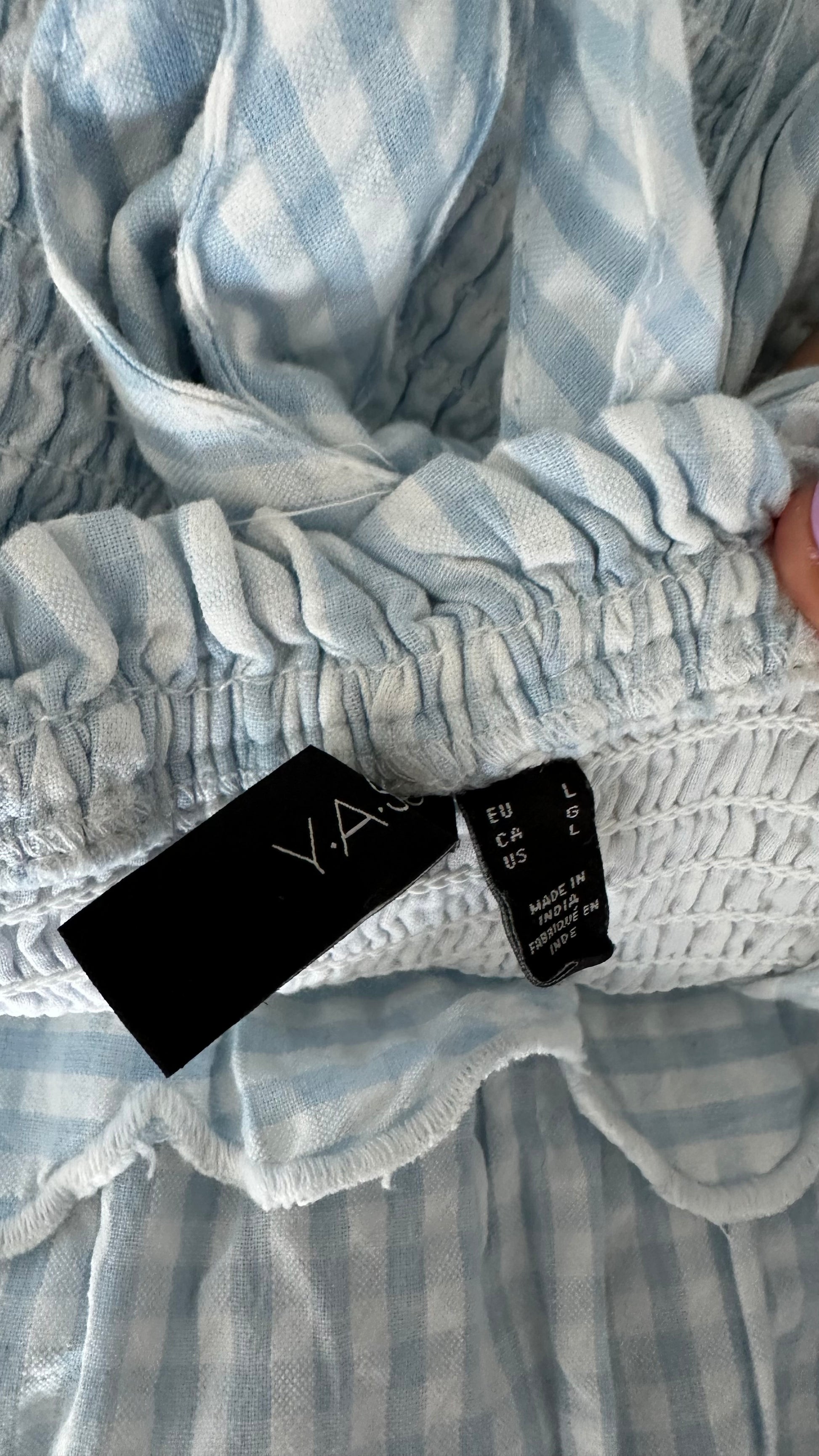 YAS light blue white gingham check long sun dress large UK 12-14