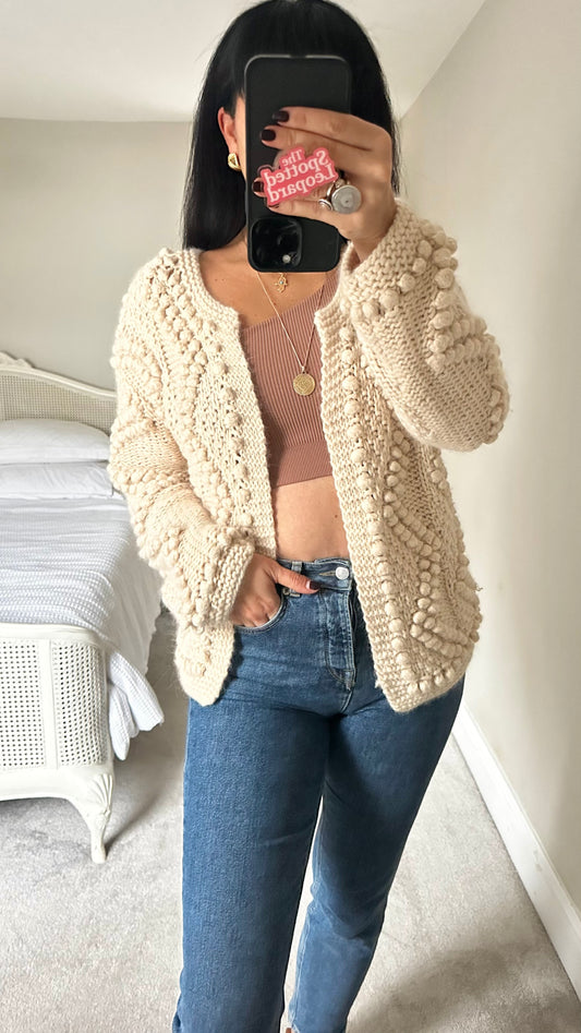 Monsoon cream beige chic wish bobble cardigan jumper angora wool blend medium UK 10-12