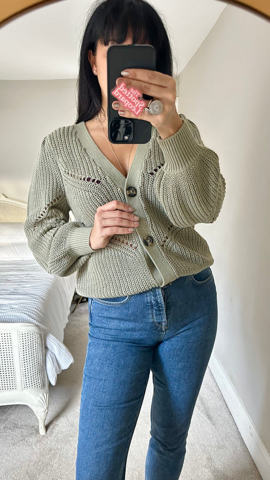 Object @ ASOS khaki green knitted jumper cardigan small UK 8 vgc