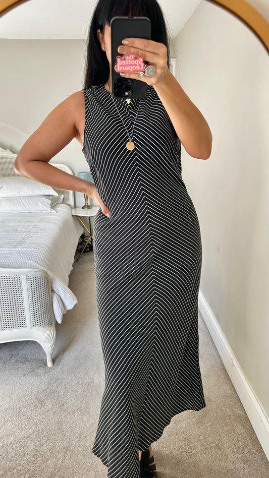 Nobody’s Child black white stripe chevron midi long dress UK 10 petite vgc