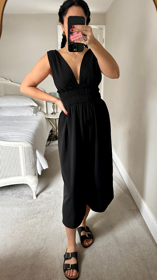 ASOS black plunge neck jumpsuit trousersuit playsuit medium UK 12 vgc