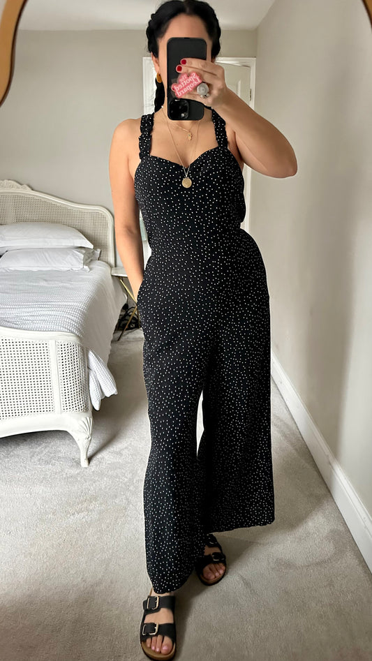 Nobody’s Child black white polka dot jumpsuit trousersuit playsuit medium UK 12 vgc